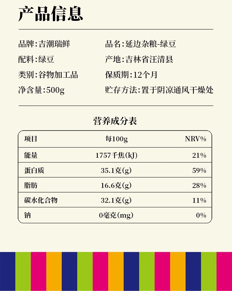 吉潮瑞鲜延边杂粮-绿豆500克*1袋
