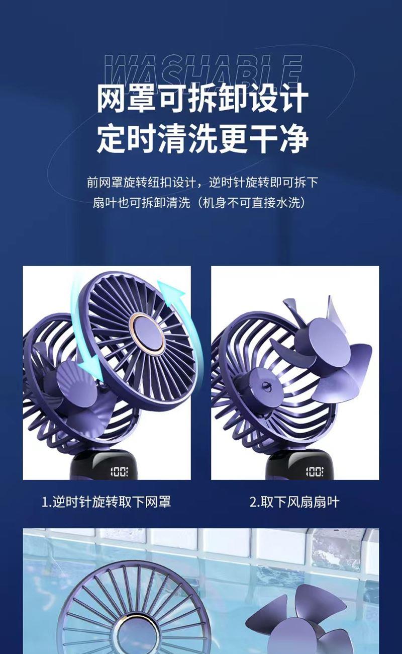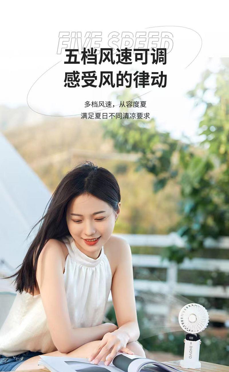 风扇档位:五档 电池型号:2000mAh 产品材质:ABS/PC/线路板 产品重量:190g 产品尺寸:188*90*46.5mm •迷你便携,安静无噪,LED显示屏, 五档风力可调,可90度折叠,底座可分离,陪您度过清凉一夏。
