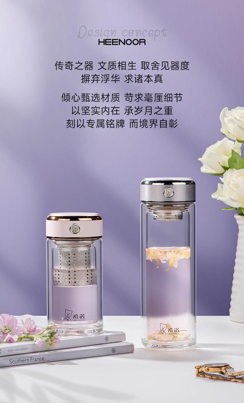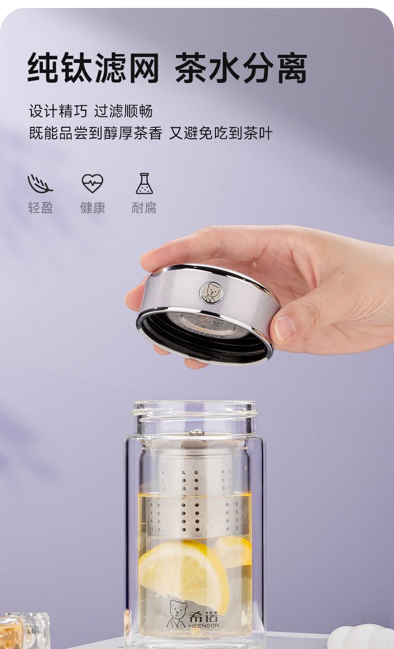 XN-605L :240ml XN-605L :52(杯口直径) x70.5(直径) x144.4(高度) 杯体 高硼硅玻璃+银离子 杯盖 食品级PP 、纯钛TA1 滤网 纯钛TA1 、食品级硅胶 密封圈 食品级硅胶 条形码 XN-605L :6951097701438 颜色 木槿紫,香草黄,珠光浅蓝 ,蜜桃粉,本色,紫罗兰