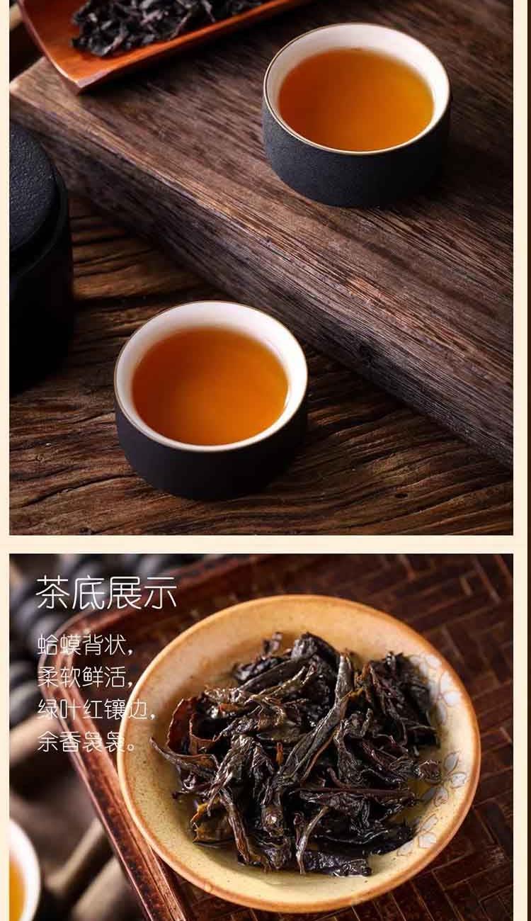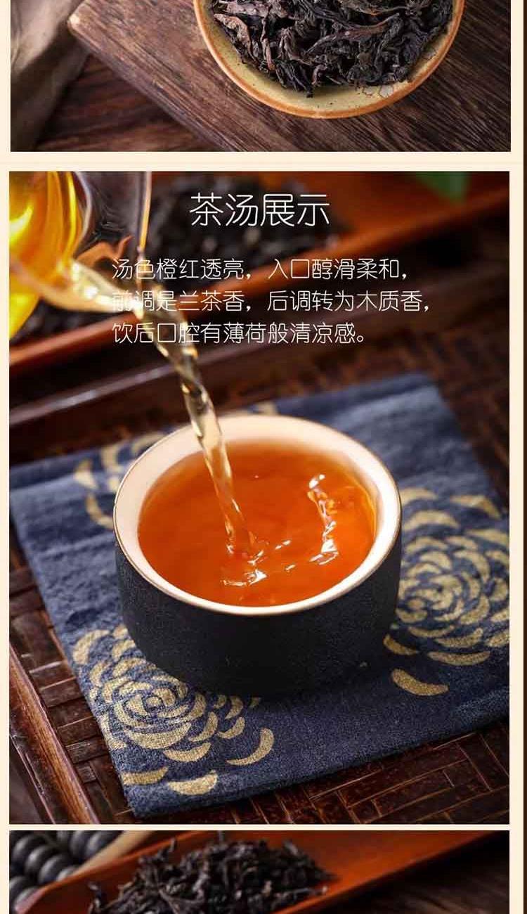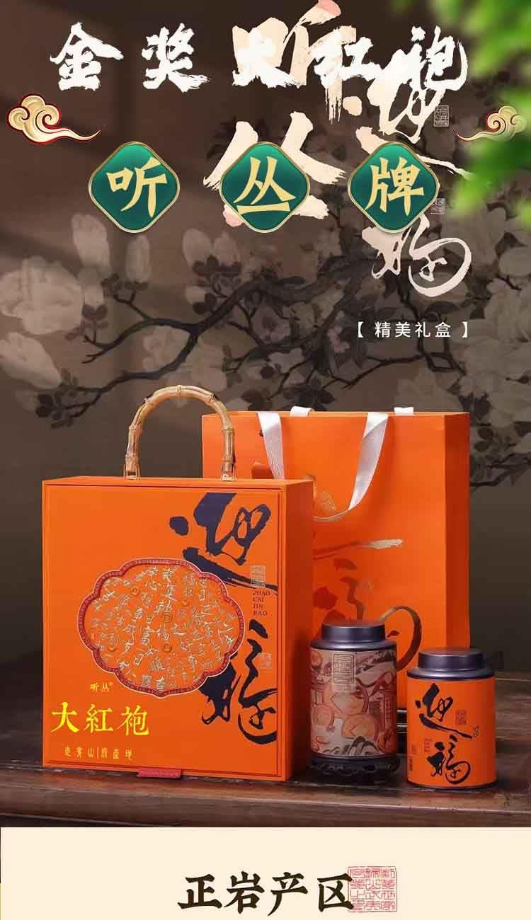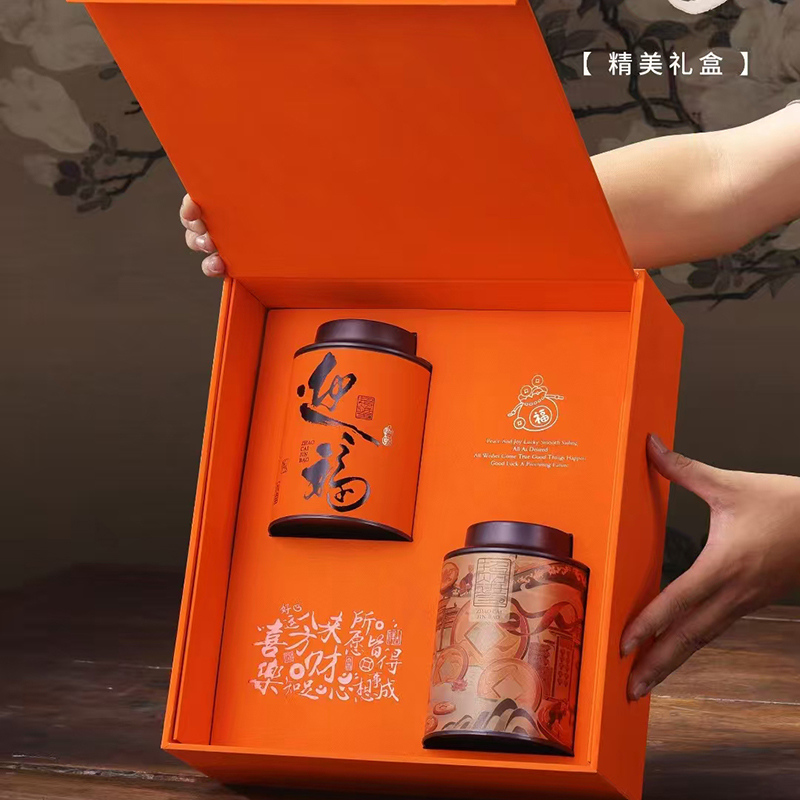 【茶名】:大红袍 【重量】:200g 【配件】:铁罐+礼盒+手提袋 【口味】:清香型 【产地】:福建·武夷山 外形:紧结、壮实、稍扭曲。 色泽:带宝色或油润;整碎:匀整。 香气:锐、浓长或幽、清远; 滋味:岩韵明显,固味甘爽,杯底有香气。 汤色:清澈、艳丽、呈深橙黄色。