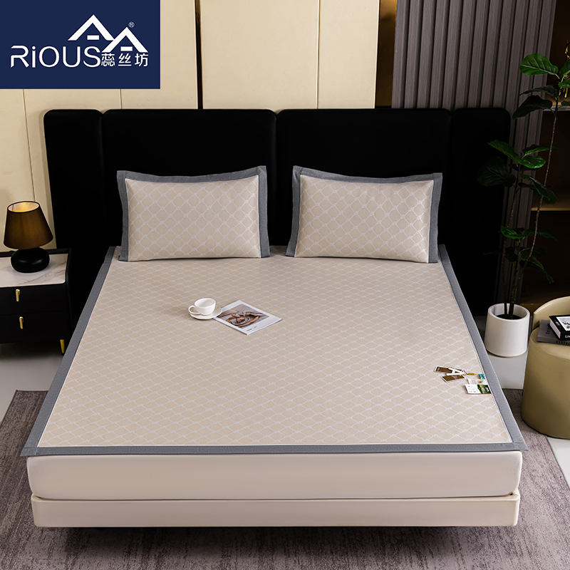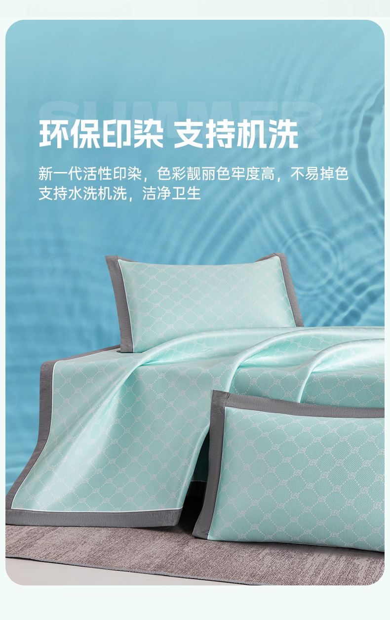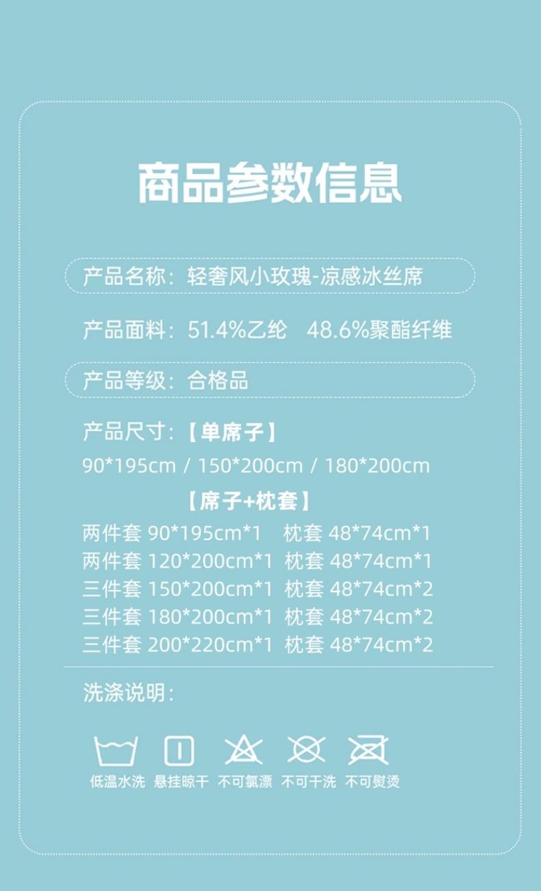蕊丝坊家纺新款轻奢风小玫瑰凉感冰丝席三件套150*200cm