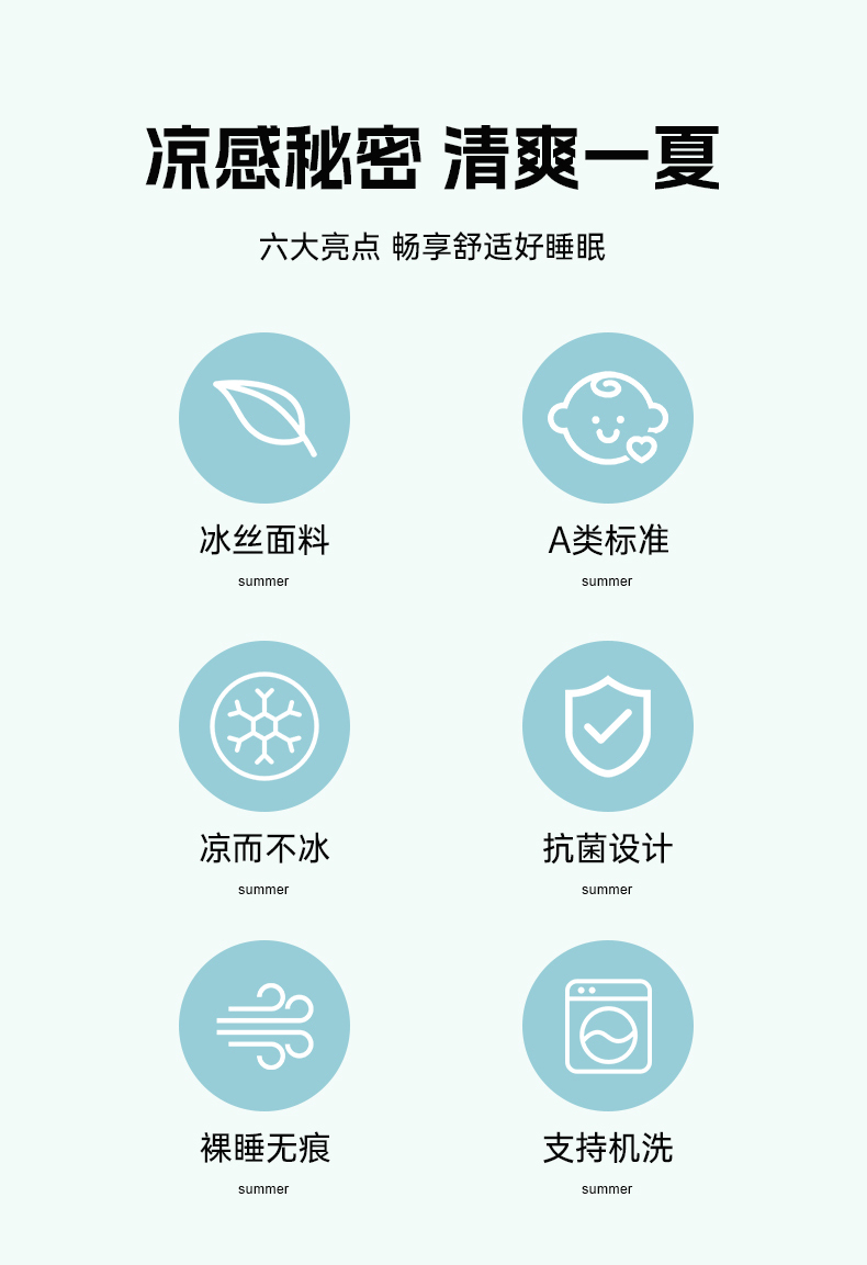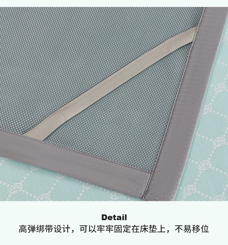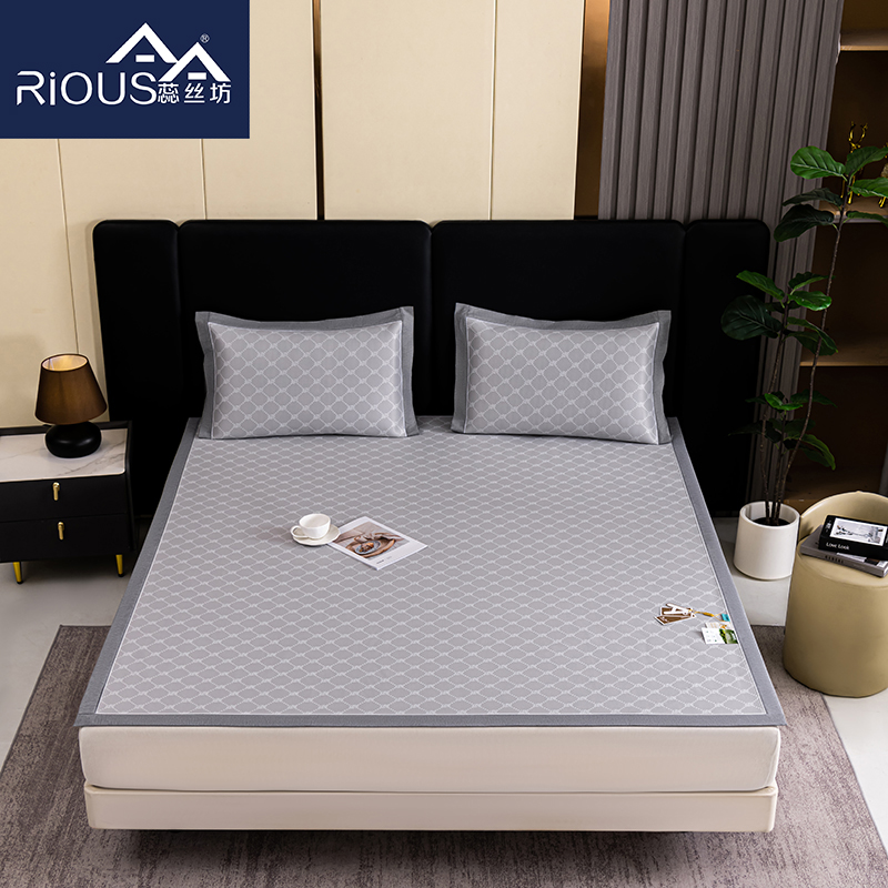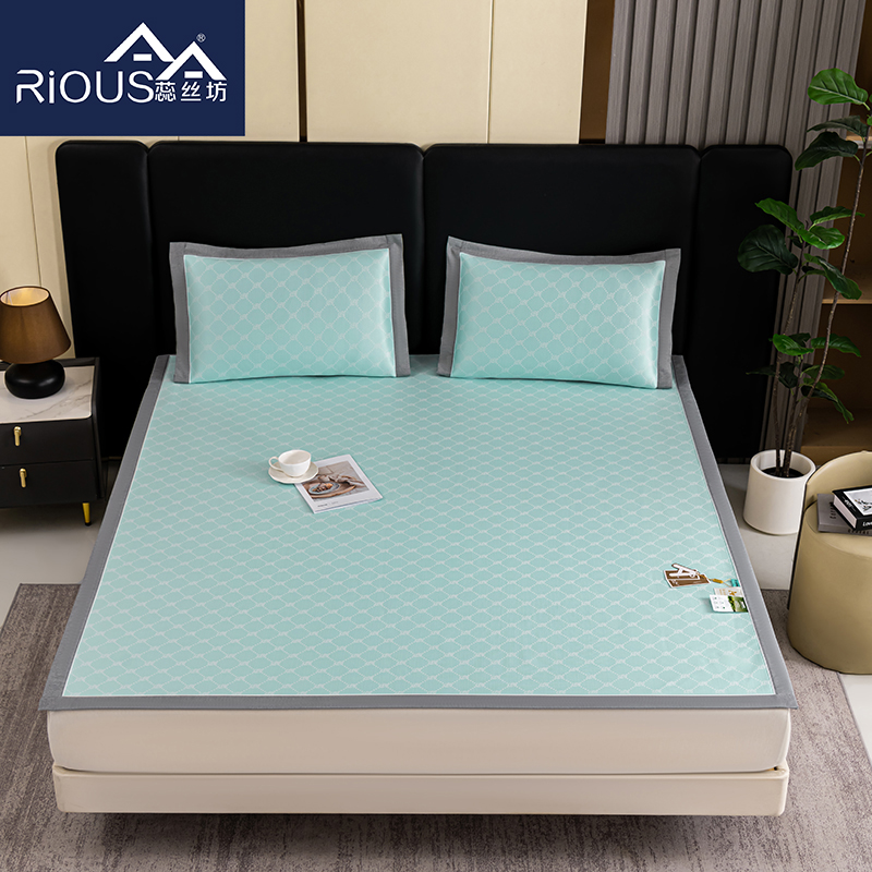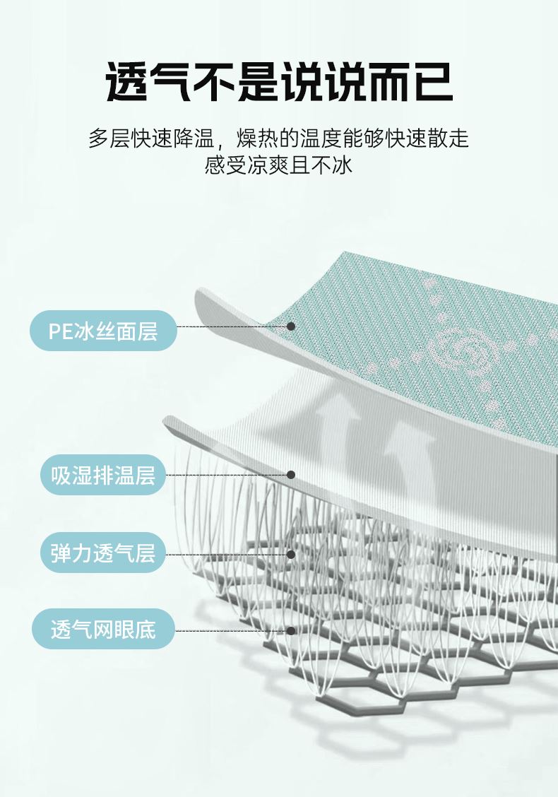 规 格:席子150*200cm 枕套48*74cm*2 花 型:灰色、绿色、香槟、湖蓝 材 质:51.4%乙纶 48.6%聚酯纤维 PE凉感提花冰丝席 舒爽微凉 凉而不冰 我们这产品达到A类标准 放心使用享受安心睡眠 敏感肌都可以使用 呵护娇嫩肌肤 全PE凉感提花冰丝面料 与众不同的丝滑手感和凉爽体验 散热性能好 凉感一触即发