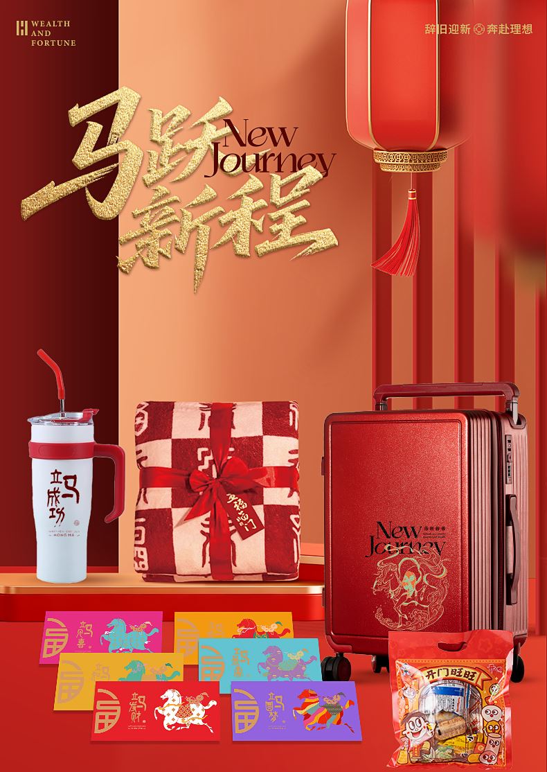 勿一马跃星程A红色行李箱新年礼盒套装商务伴手礼