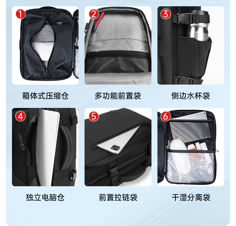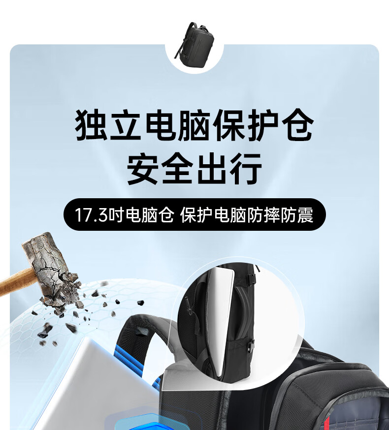 8.三层架构:独立电脑仓+大容量主仓+便携前袋