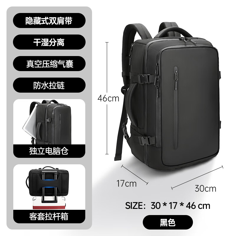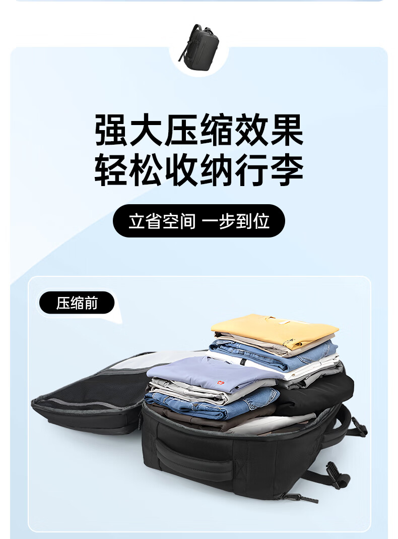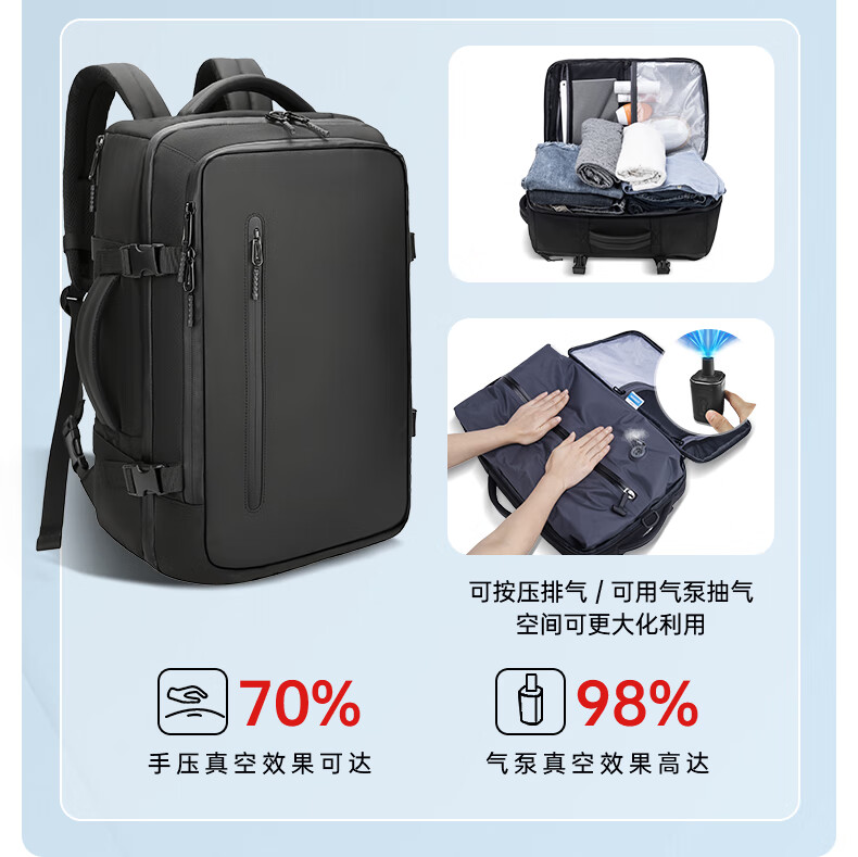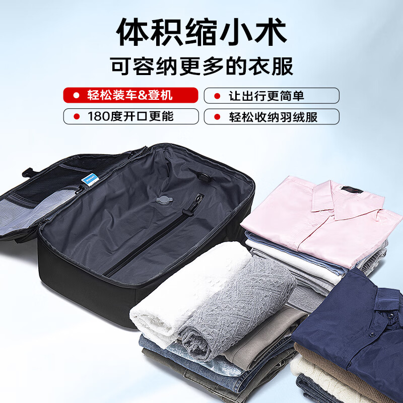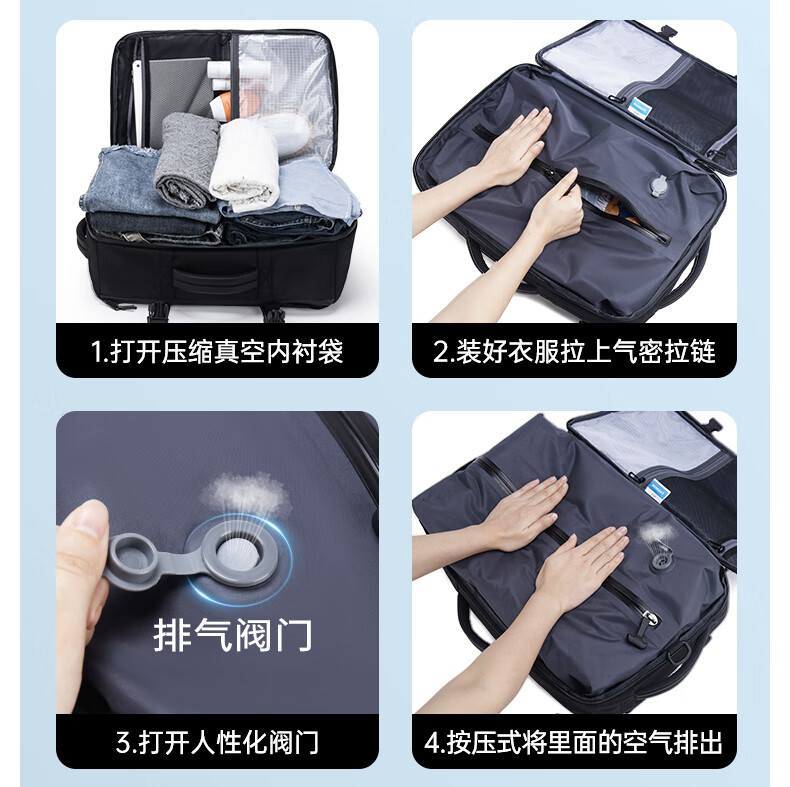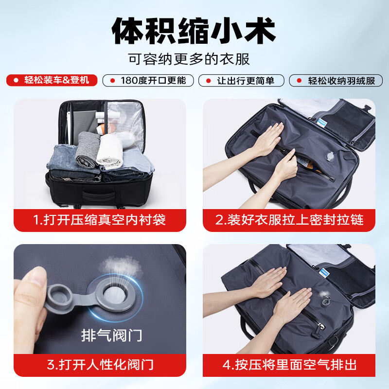 1.主仓真空压缩功能,轻松收纳行李