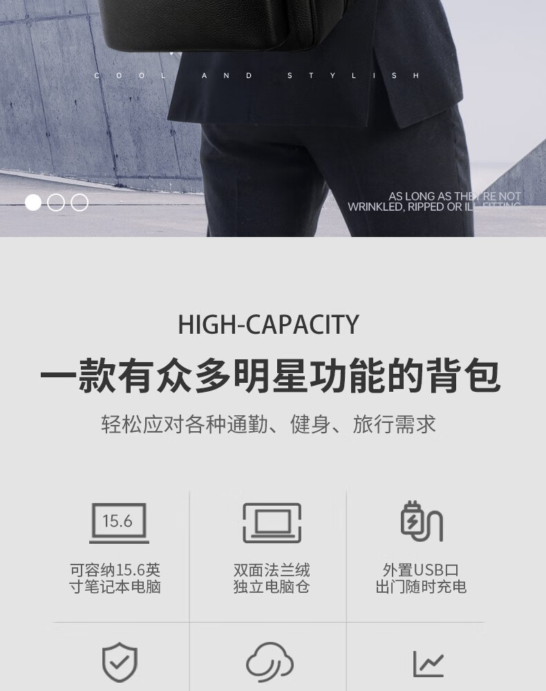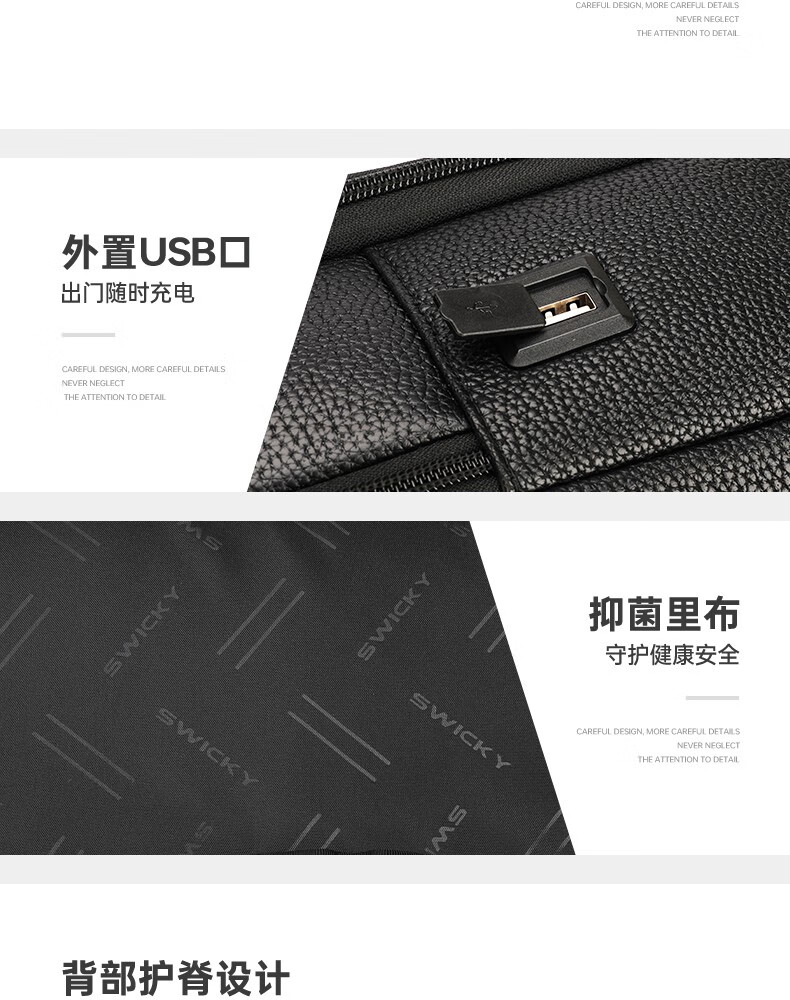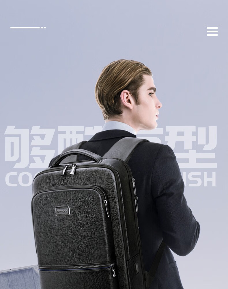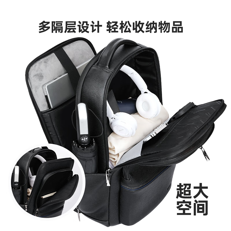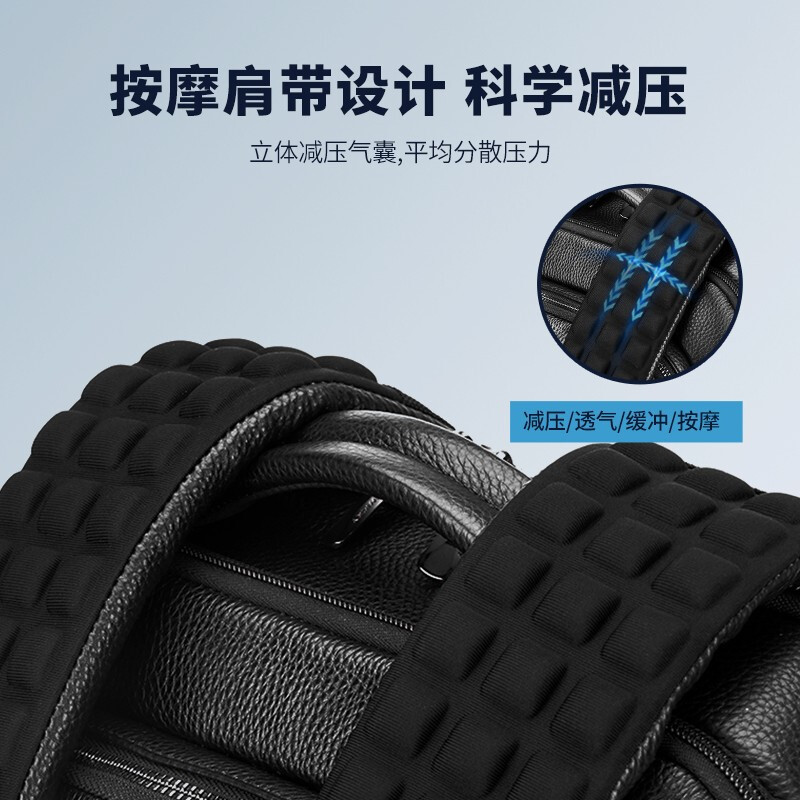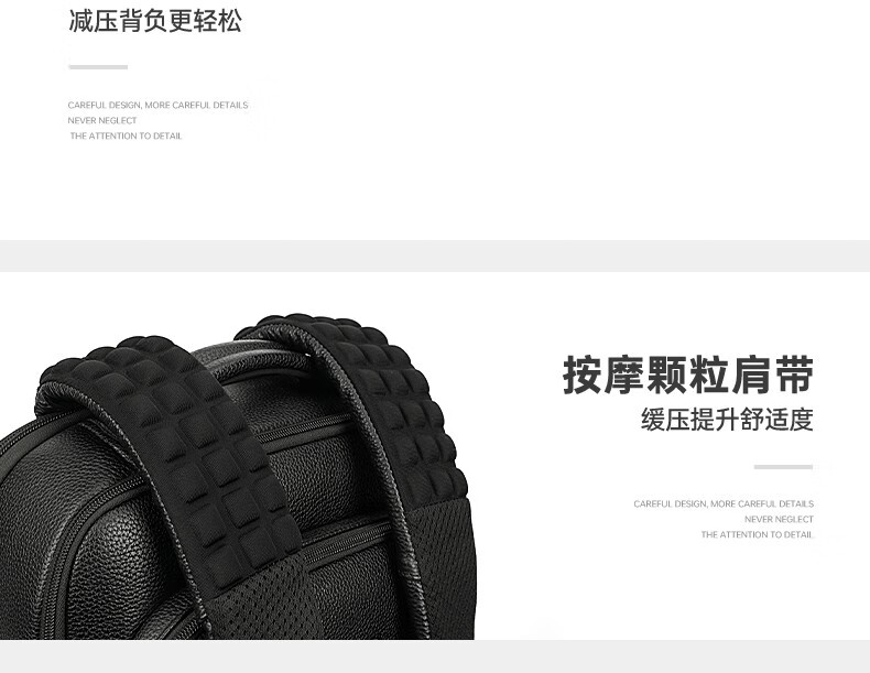 型 号:sw-88128 彩盒包装 尺 寸: 300*180*430mm 材 质:皮革 颜 色:黑色 重 量:1.0kg 双肩背包:大容量双仓,多功能科学分区系统,质感金属挂扣,可挂钥匙或军刀等小物件。轻奢格调,奢华质感·匠心之作。