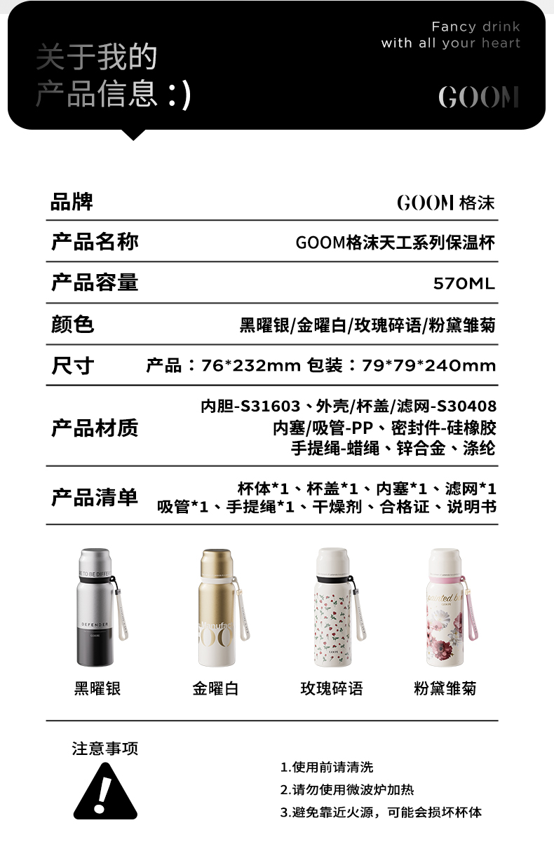 4、黄金容量:570ml贴心续航,满足日常饮水需求!