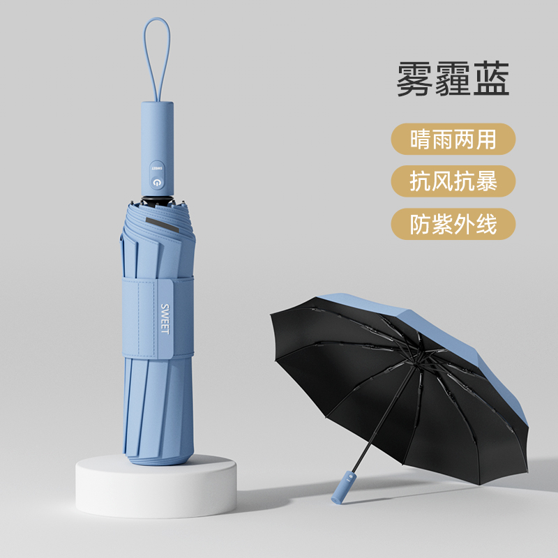 左都ZD2542--正向黑胶简约自动伞10骨晴雨伞