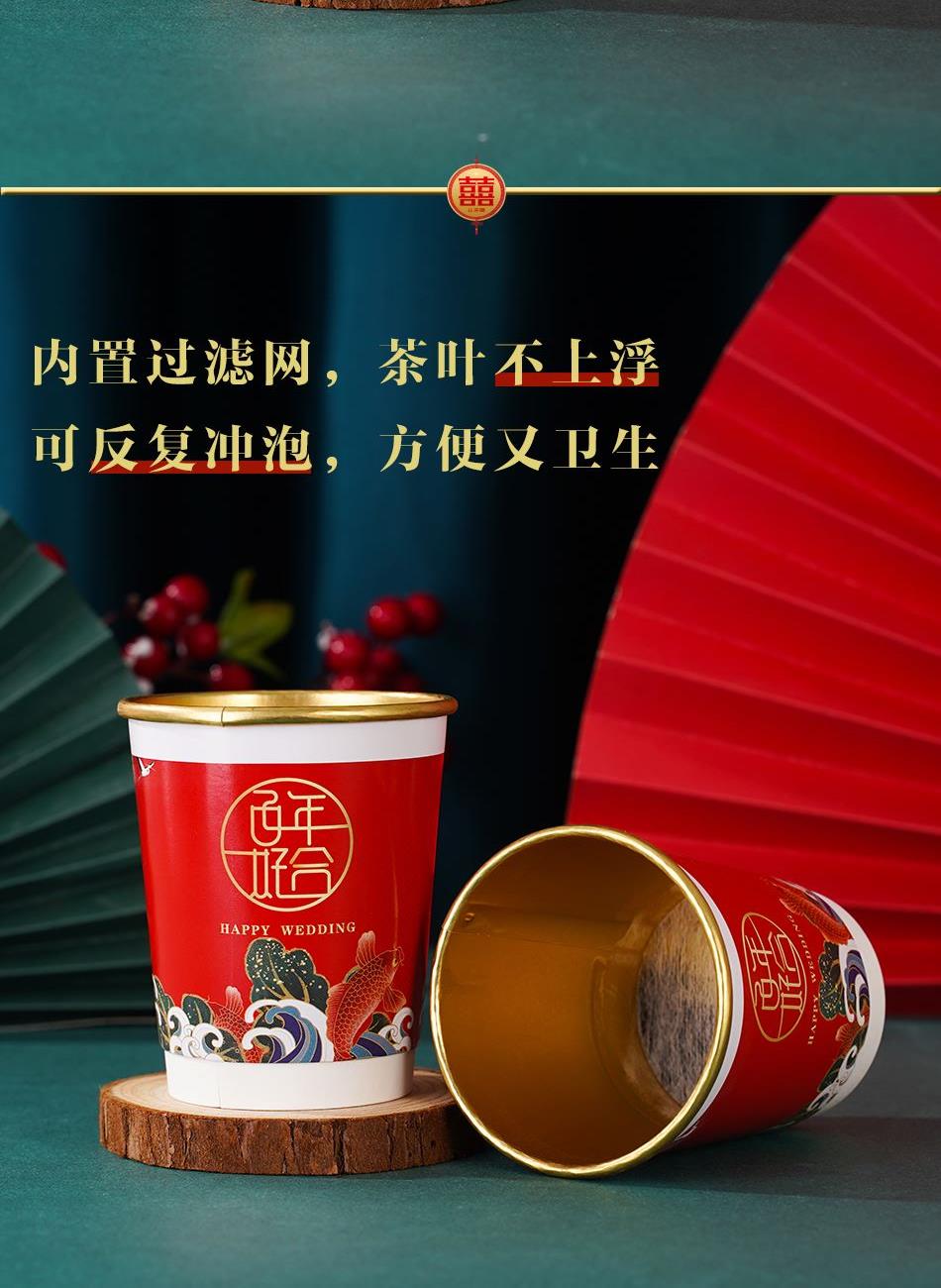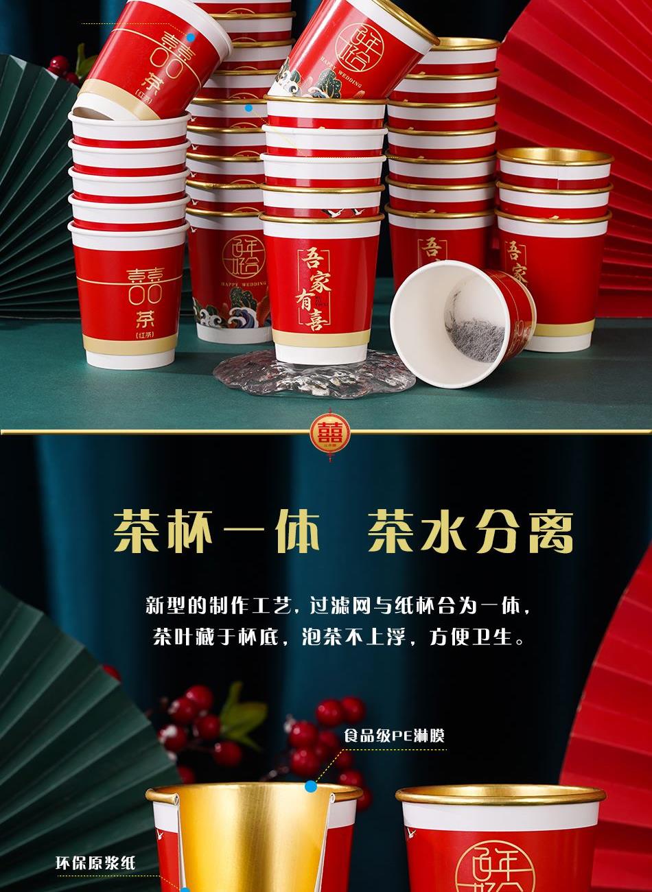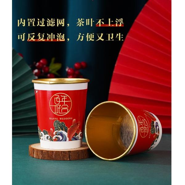 婚庆隐茶杯带茶叶一次性纸杯红色喜庆喜事家用待客纸杯茶定制