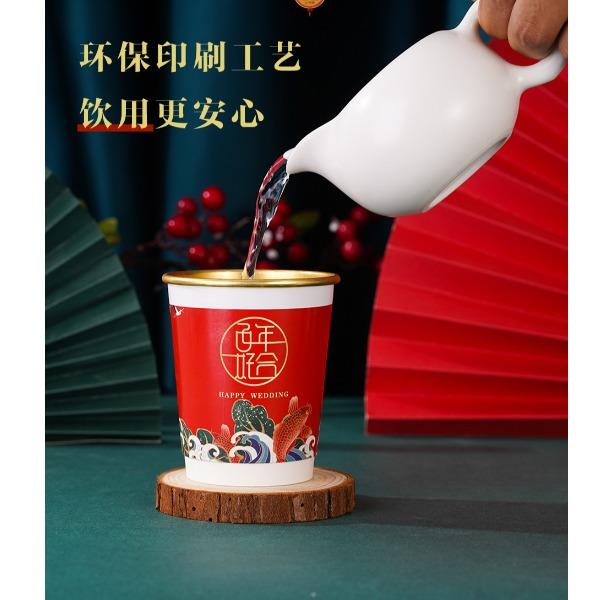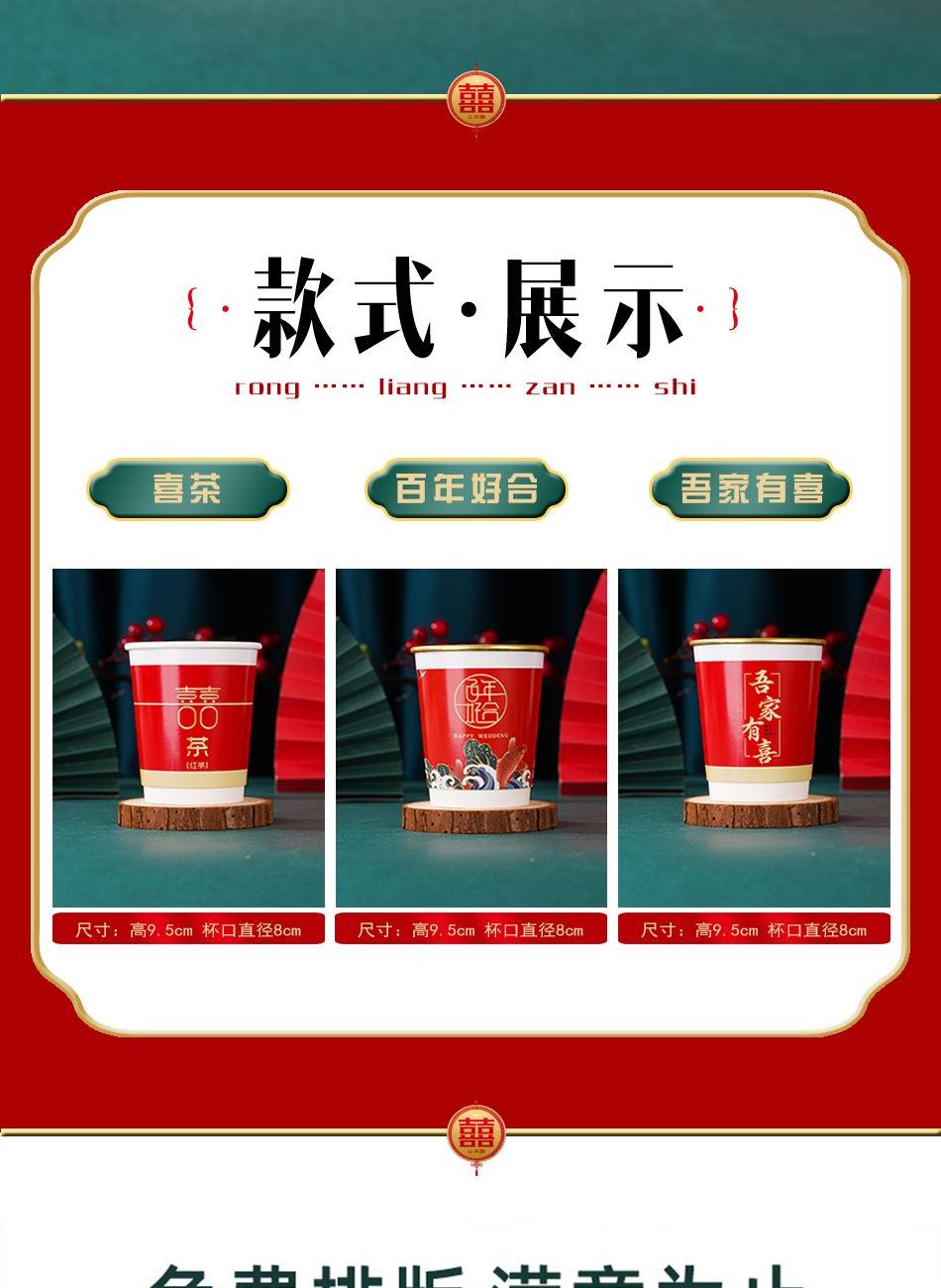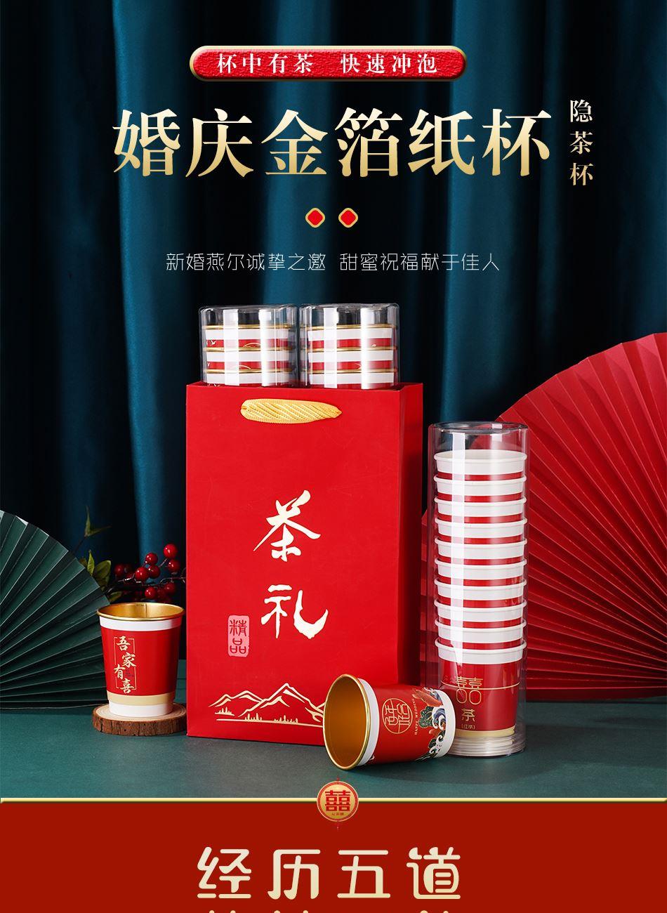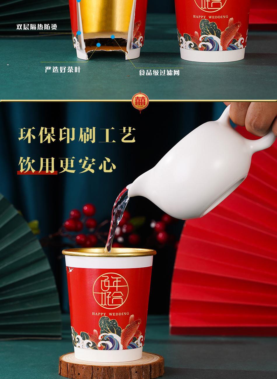 婚庆隐茶杯带茶叶一次性纸杯红色喜庆喜事家用待客纸杯茶定制