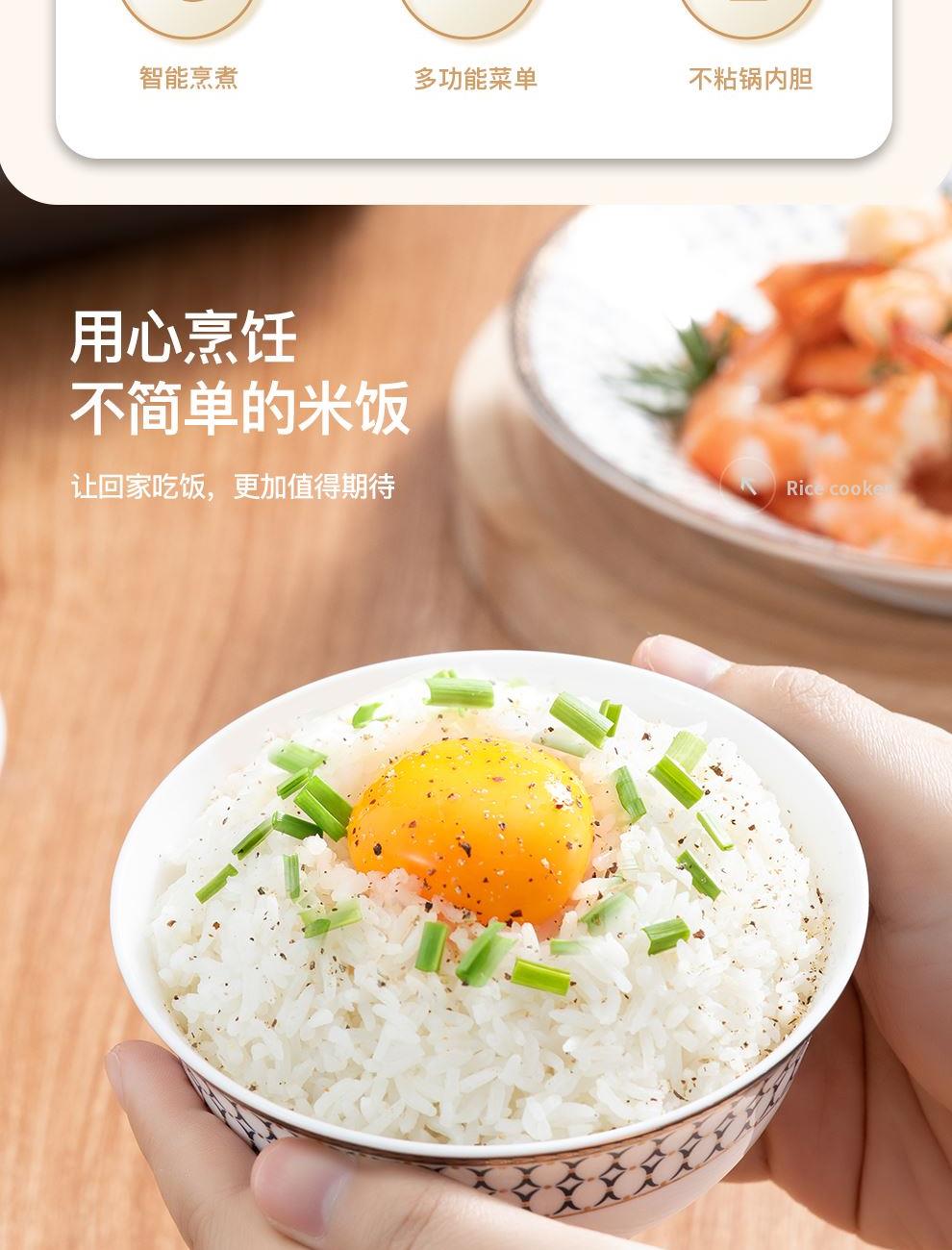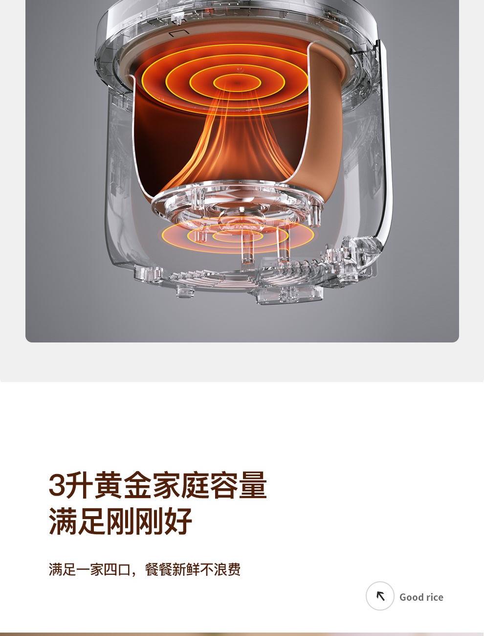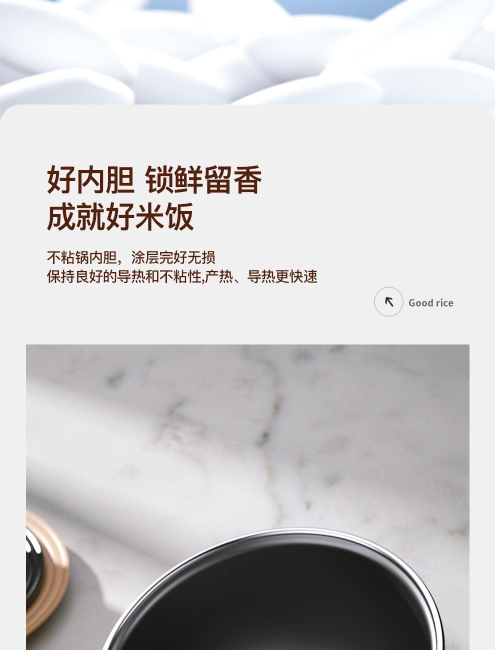 额定功率:500W 产品容量:3.0L 额定电压:220V~ 产品频率:50Hz 产品净重:2.0kg 产品毛重:2.4kg 整箱重量:15.6kg 装 箱 数:6台/箱 双层防烫双层防烫,食品级铝合金不粘内胆 触控菜单多功能触控菜单选择,数码显示 智能预约24小时智能预约、长效保温 铝合金发热盘波浪环形发热盘,聚能发热