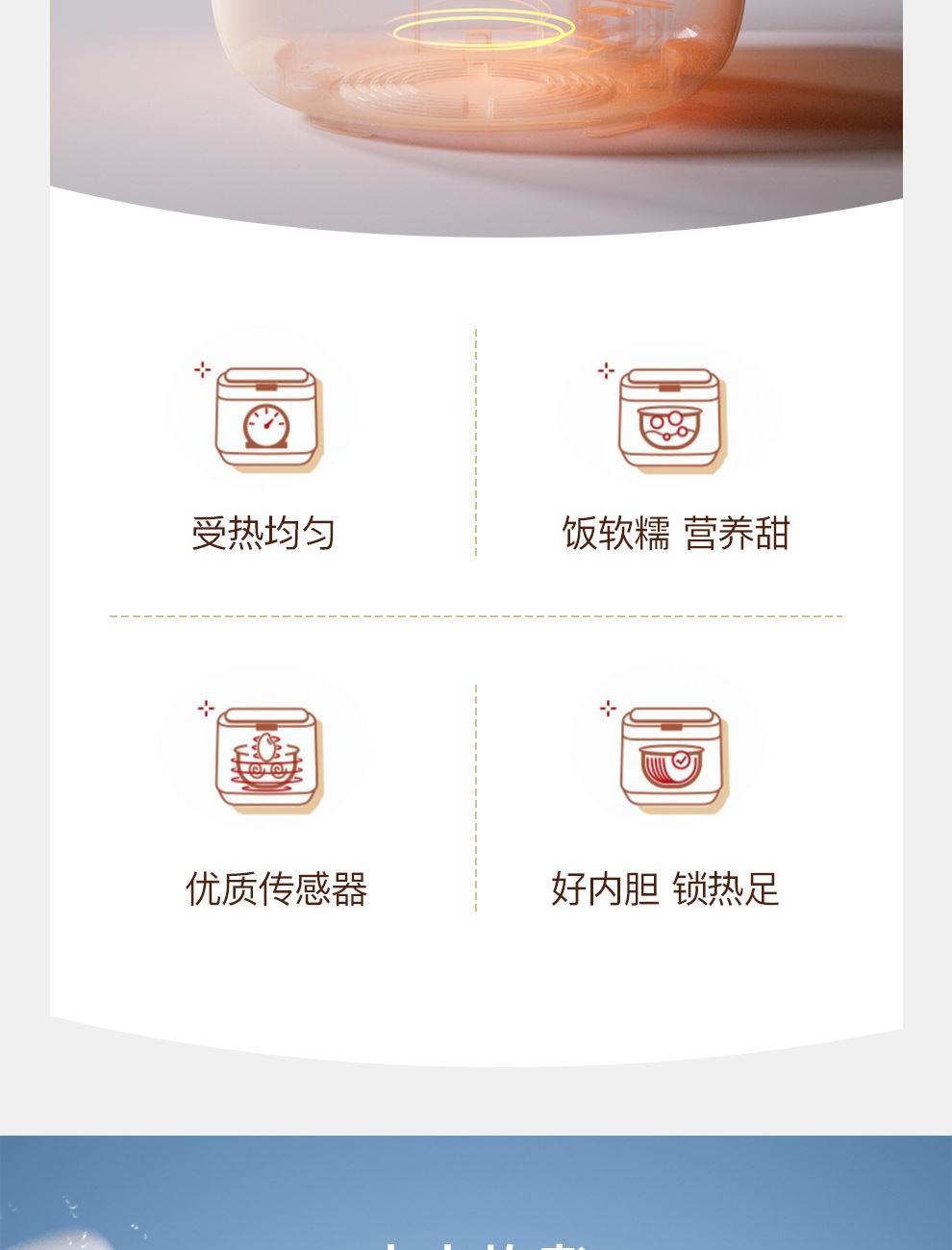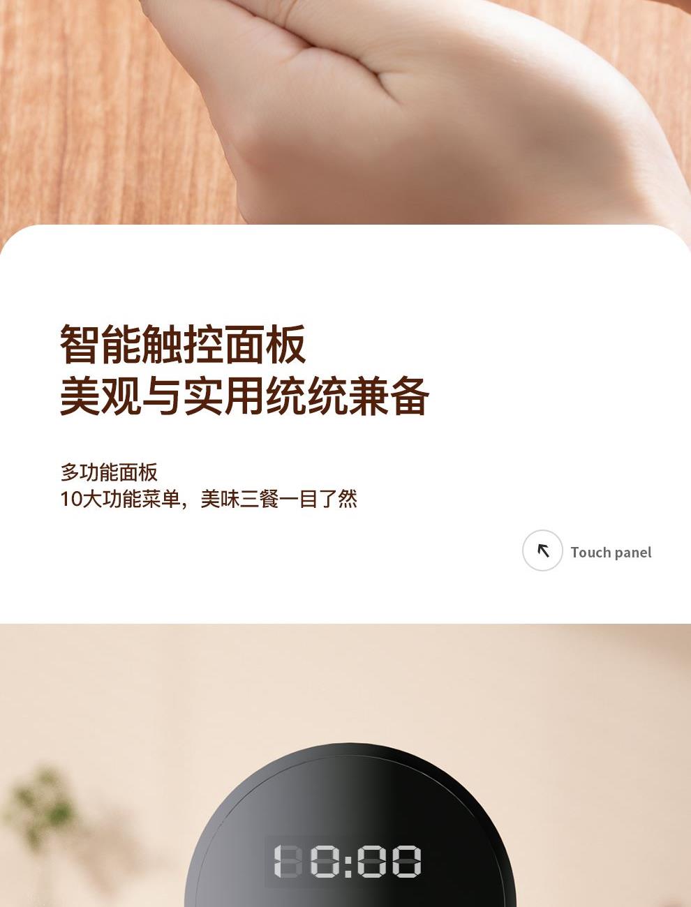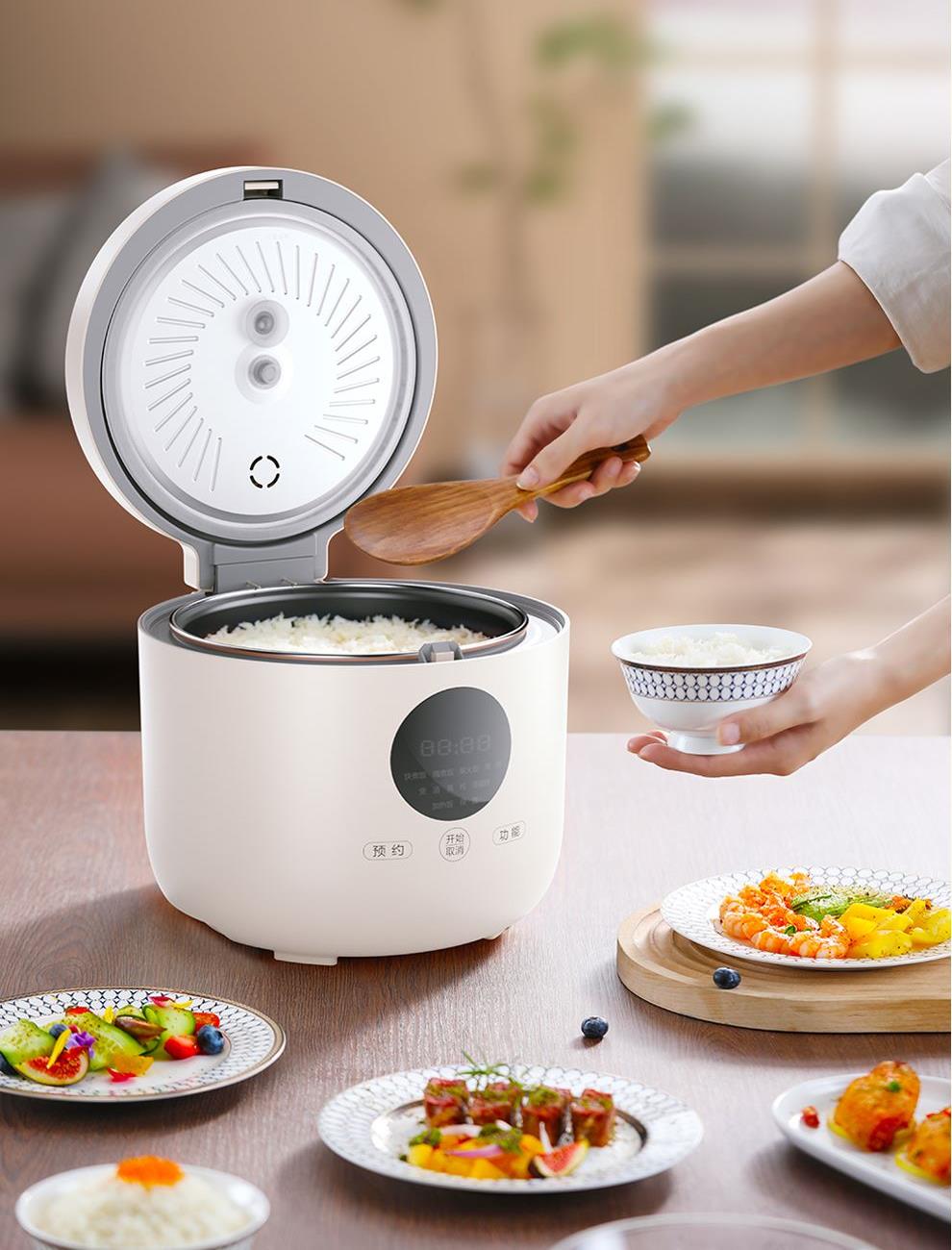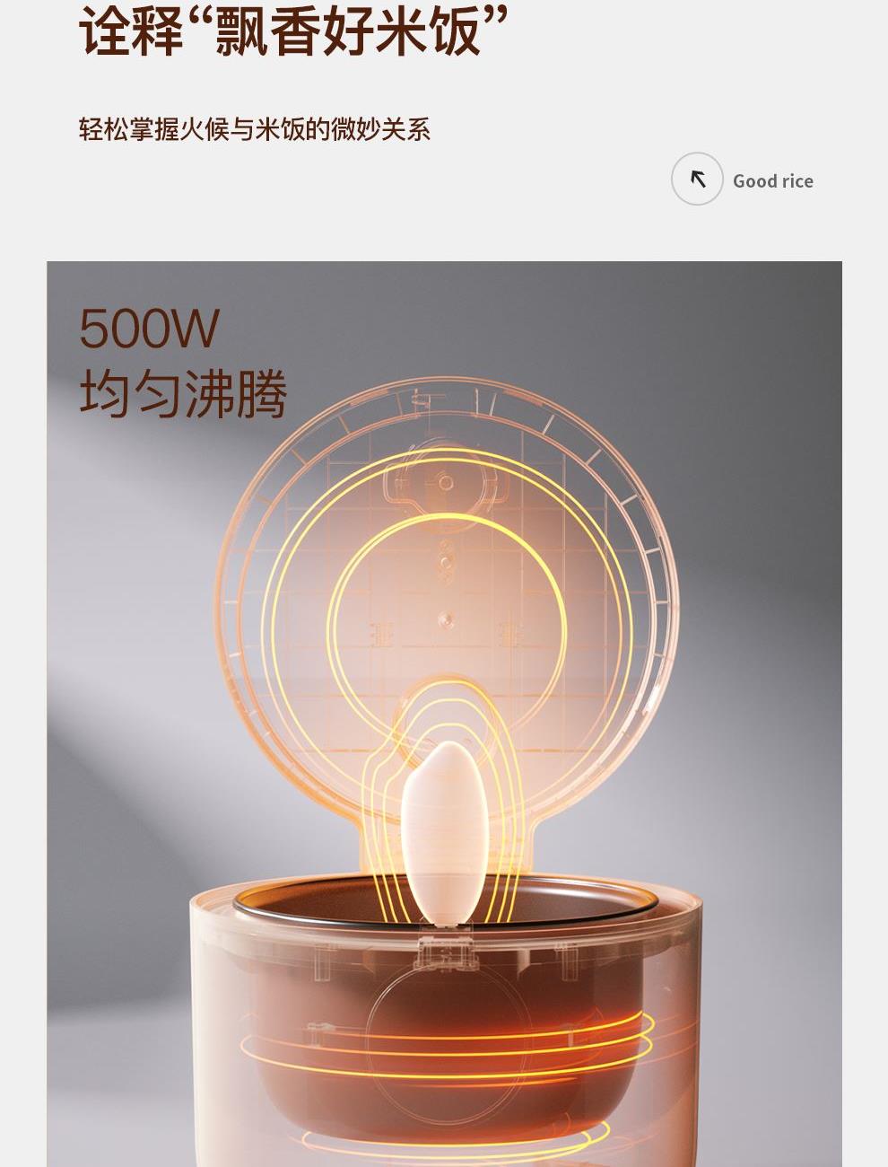 额定功率:500W 产品容量:3.0L 额定电压:220V~ 产品频率:50Hz 产品净重:2.0kg 产品毛重:2.4kg 整箱重量:15.6kg 装 箱 数:6台/箱 双层防烫双层防烫,食品级铝合金不粘内胆 触控菜单多功能触控菜单选择,数码显示 智能预约24小时智能预约、长效保温 铝合金发热盘波浪环形发热盘,聚能发热