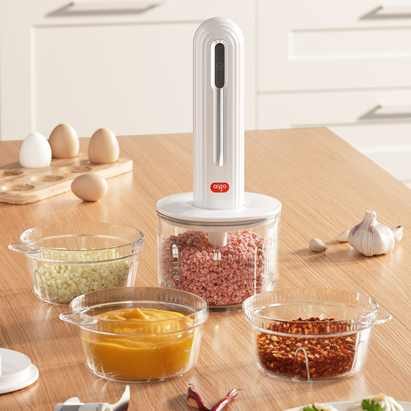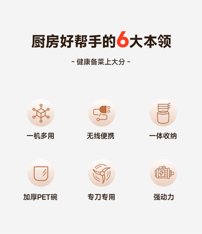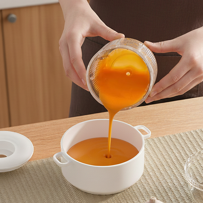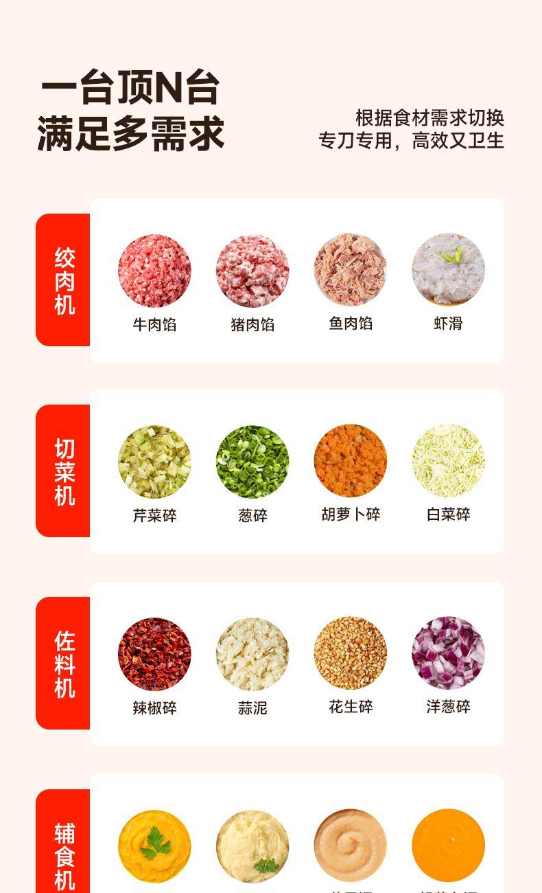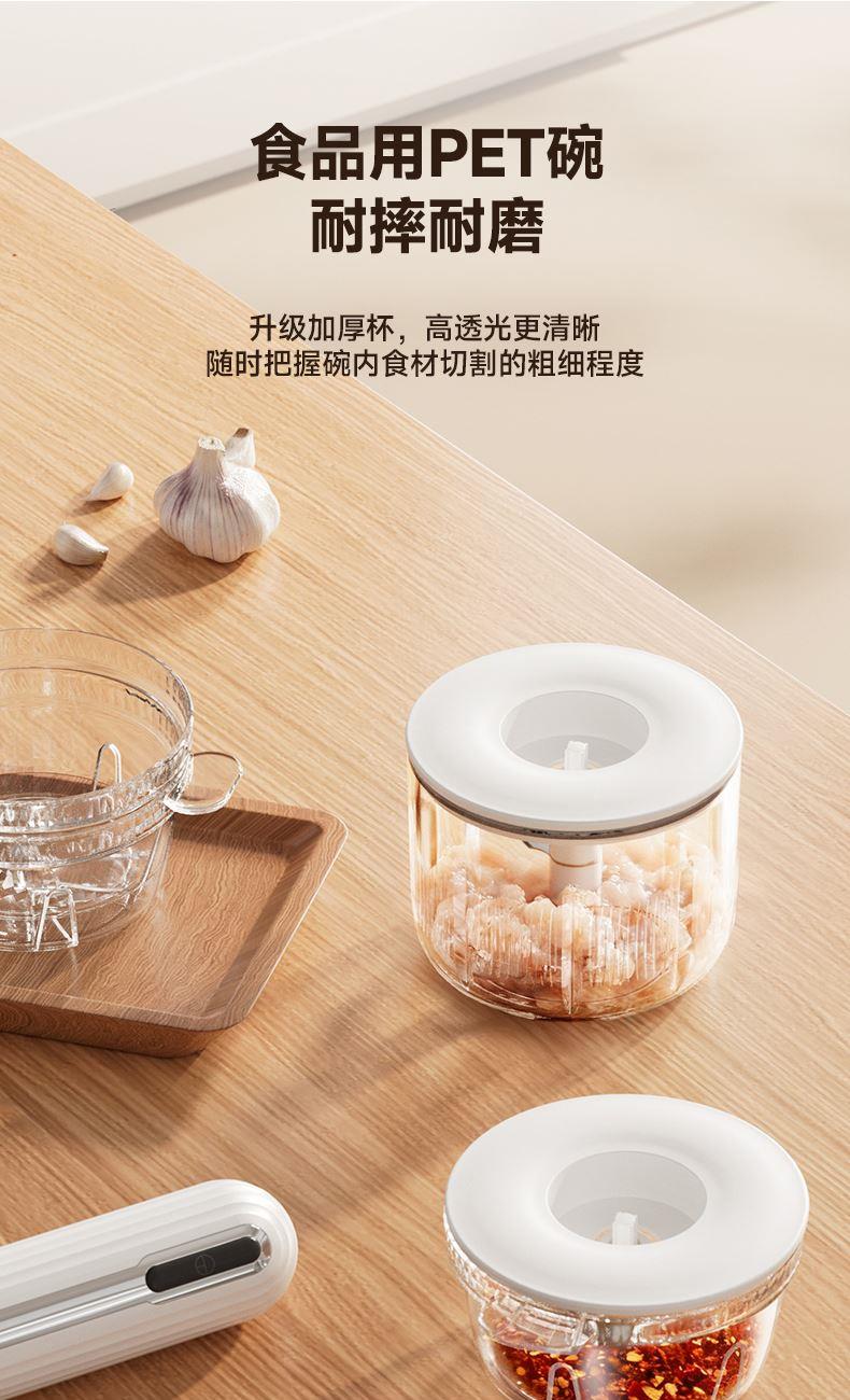 Type-C快充3-4小时,满电搅打20次; 大杯搅肉泥400mL,小杯200mL做果酱,四叶/两叶刀片按需切换; 卡刀自停+双重保护;食材过量自动断电,电压异常红灯预警,小白操作零风险; 极简料理逻辑30秒,点动开关一按即用,单手操作解放宝 妈。 功率:30W 电池容量:1300mAh 毛重:540g 包装方式:彩邮外 包装尺寸:125*125*175mm