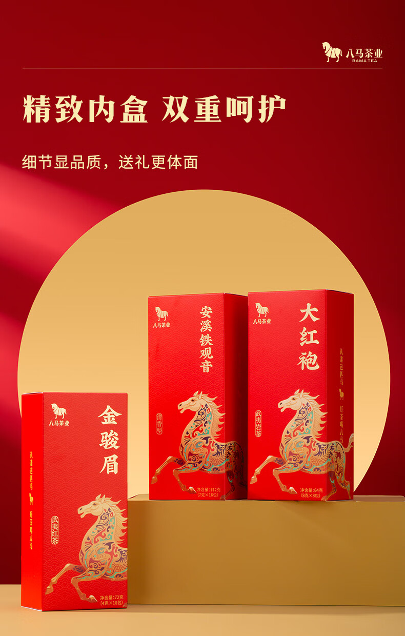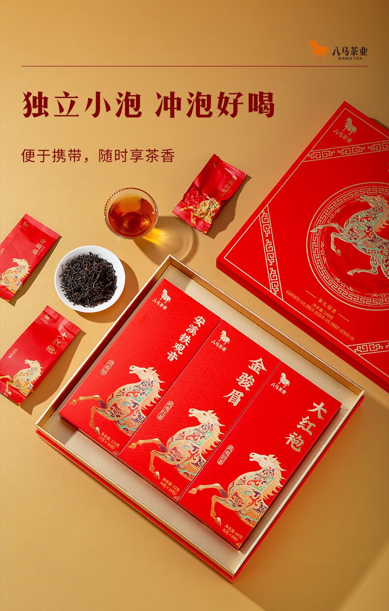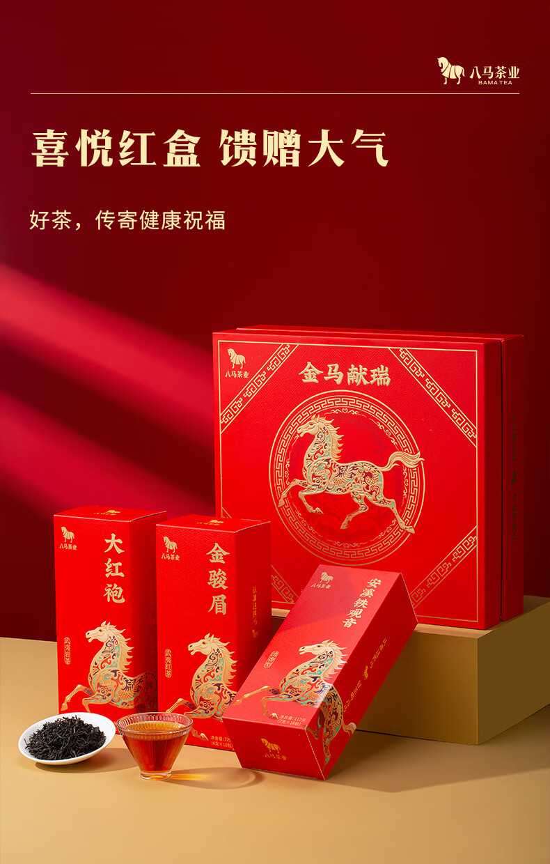 礼赠属性拉满:红金配色 +“金马献瑞” 的喜庆设计,包装精致有质感,适配节日、走亲访友等礼赠场景,拿得出手;