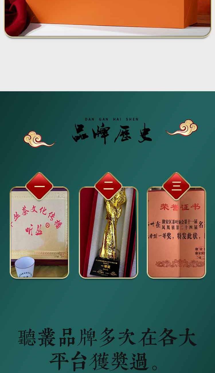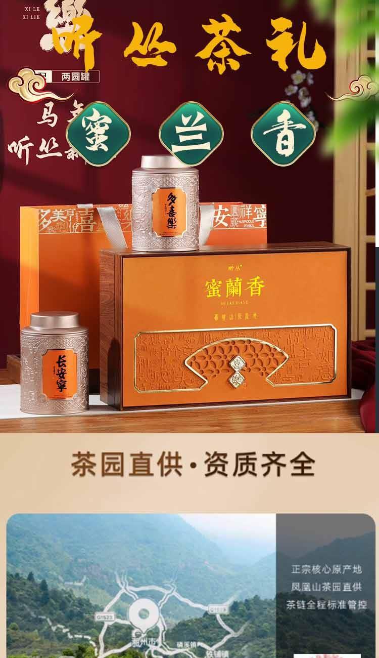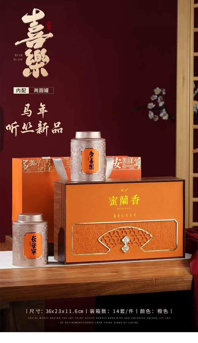 【茶名】:蜜兰香 【重量】:250g 【配件】:铁罐+礼盒+手提袋 【口味】:清香型 【产地】:广东·凤凰山 蜜兰香 特点 干茶外形紧结肥硕,色泽红褐或乌润,条索紧结较直,具有光泽。 香气浓郁,独具兰花香和甜美的蜜香,两者交织在一起,形成独特的“浓蜜幽兰”特韵。 汤色 汤色橙黄透亮,清澈明亮,表现出茶叶的高品质。 耐泡性!