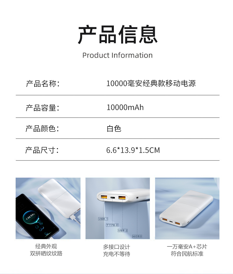 1、1万毫安经典商务款移动电源 一万毫安 经典外观设计 双USB接口同时充电 3C符合民航局标准,可随身携带 2、升级款手机平板桌面支架 可折叠伸缩 5-90°角度调节 预留充电为,边看边充
