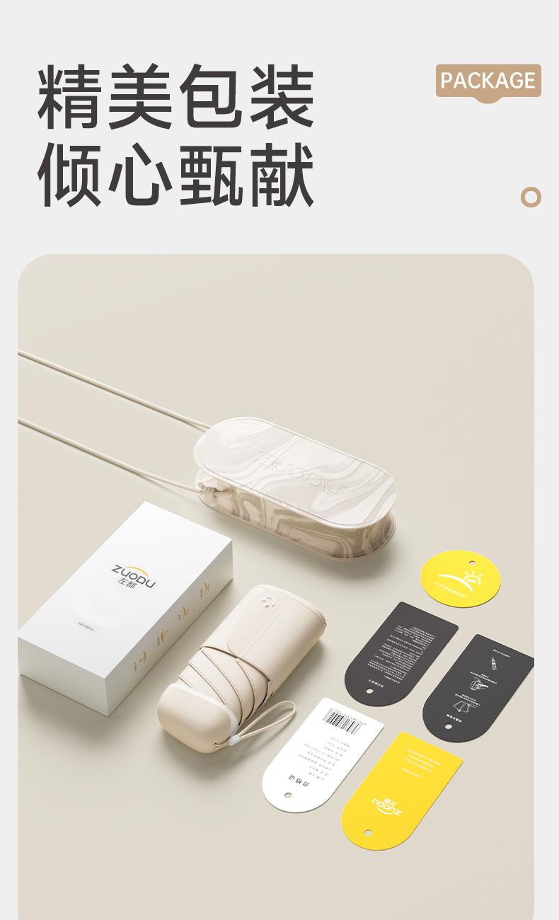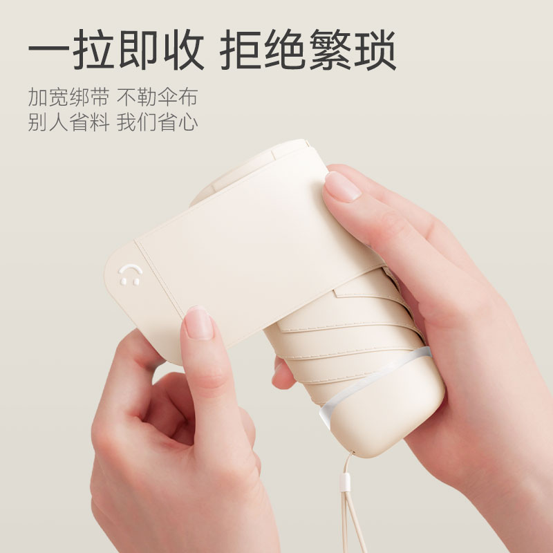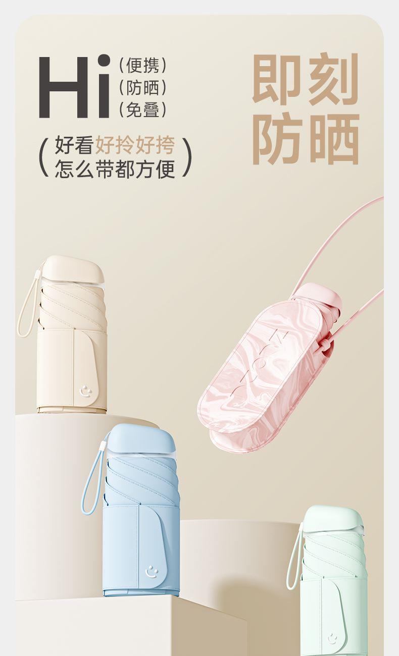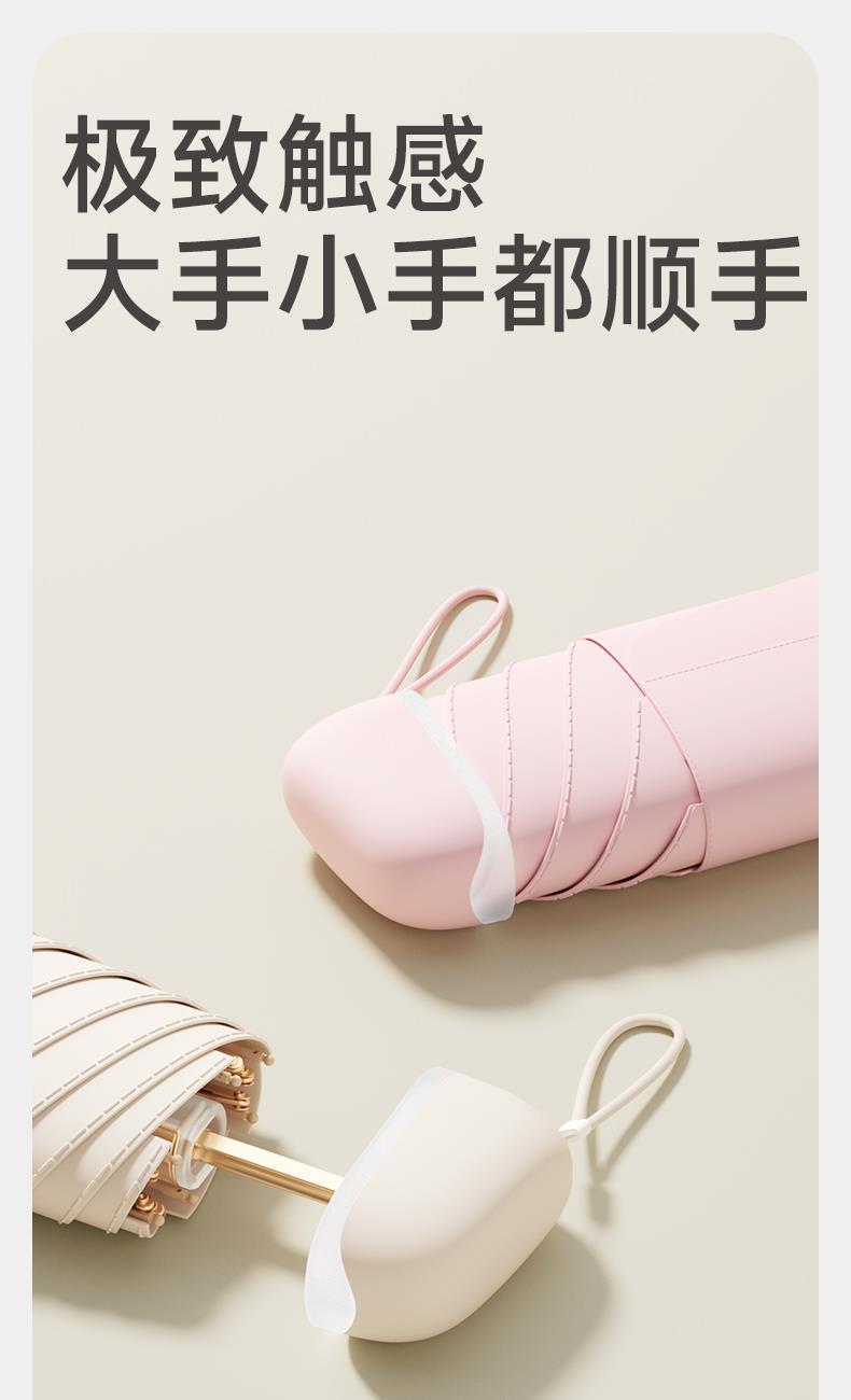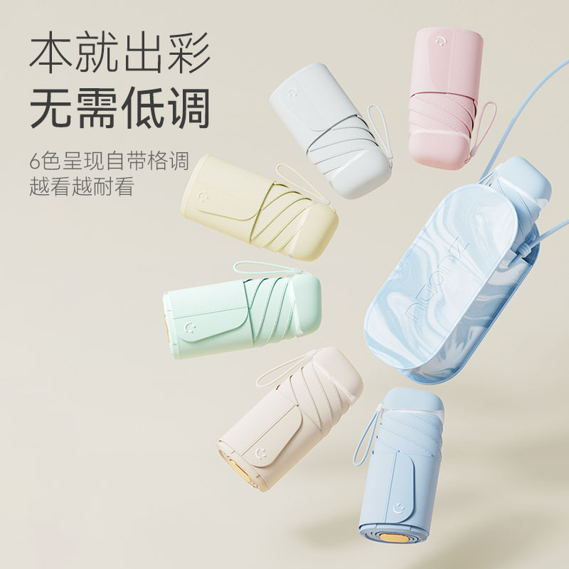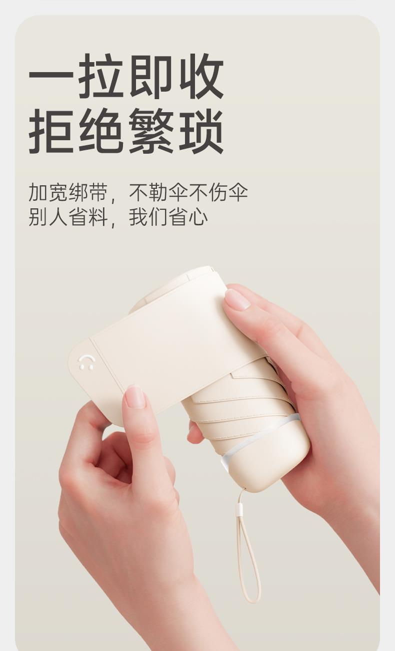 商品货号:ZD208 伞架材质:铝合金,不锈钢,玻纤 伞面材质:210T覆膜全遮光黑胶 款式:手动六折 商品参数:直径:90cm 高度:54cm 收拢宽度径:6.5cm 收拢高度:15cm 商品毛重:0.25 商品颜色: ZD208-降樱粉 ZD208-沁心蓝 ZD208-锦帆黄 ZD208-杜鹃米 ZD208-迷蝶绿 ZD208-奶茶灰