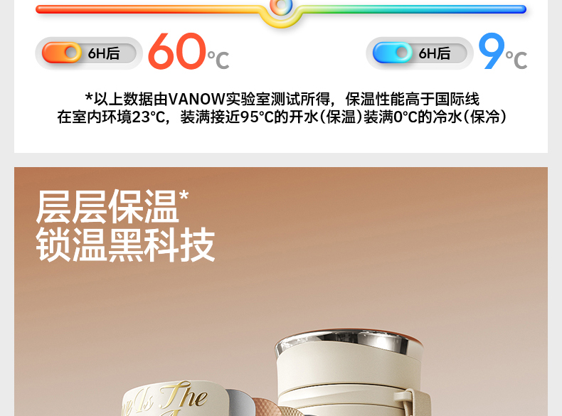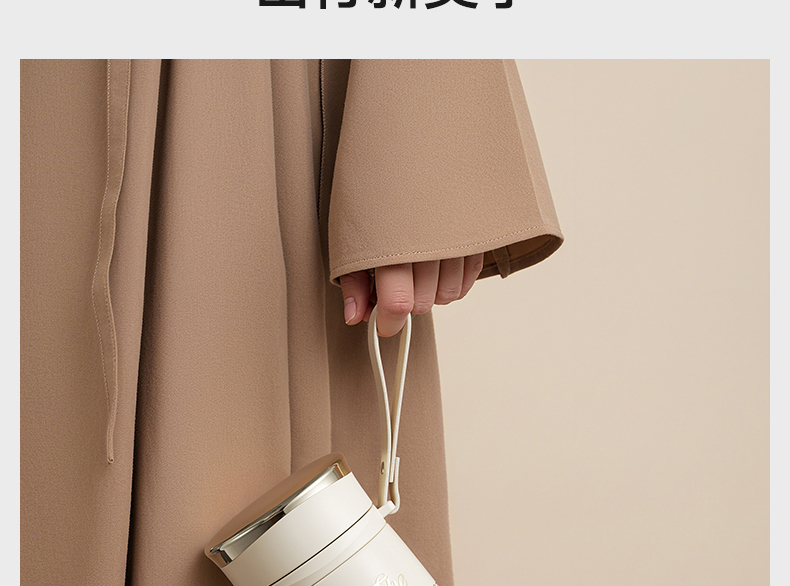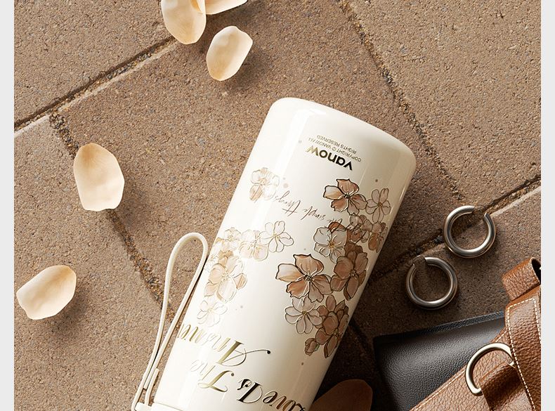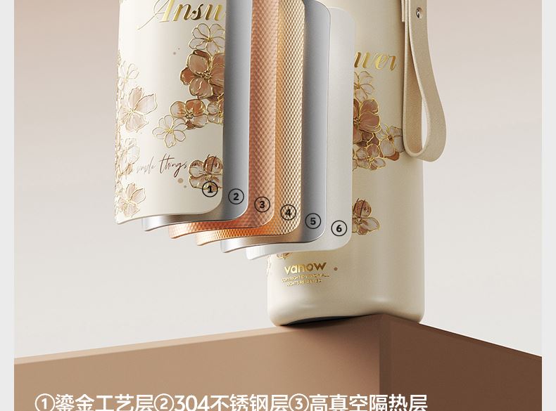 型号:VO-HT46FSX 颜色:海棠粉 容量:460ml 材质:316不锈钢,pp,硅橡胶 尺寸:190mm*72mm 1.层层保温,锁温黑科技 2.独立茶仓,优雅喝不吐渣 3.密封防漏,装包,没在怕的 4.柔软舒适,高颜值携提绳,出行新美学 5.东方雅韵,精致海棠丝巾