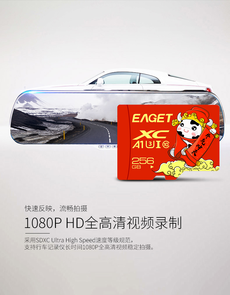(EAGET)忆捷手机监控摄像高速行车记录仪TF卡256GB