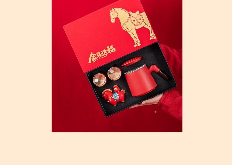 开门红年会茶具礼品金马送福办公杯摆件四件套