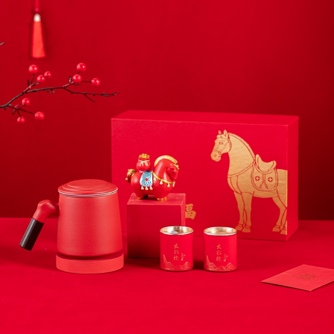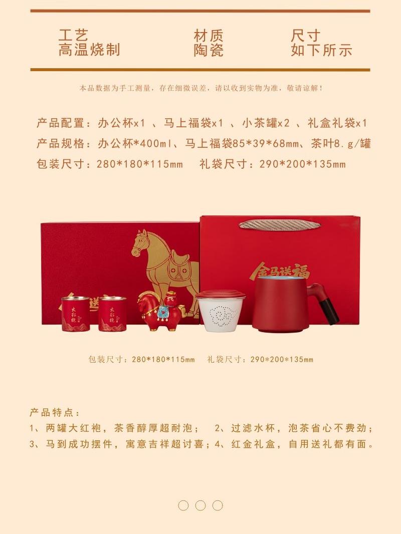 产品配置:办公杯x1 、马上福袋x1 、小茶罐x2 、礼盒礼袋x1