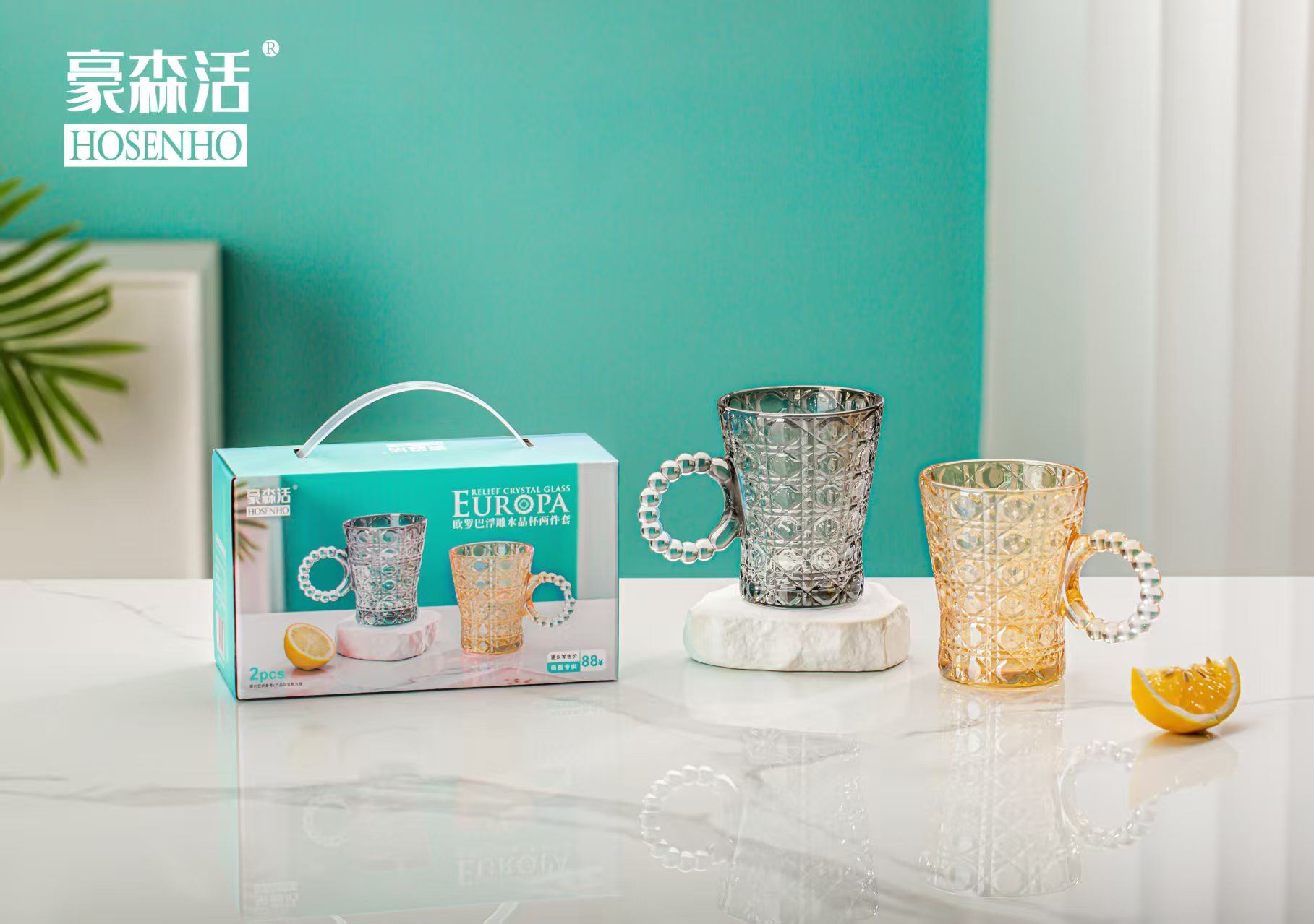 豪森活欧罗巴浮雕水晶杯两件套