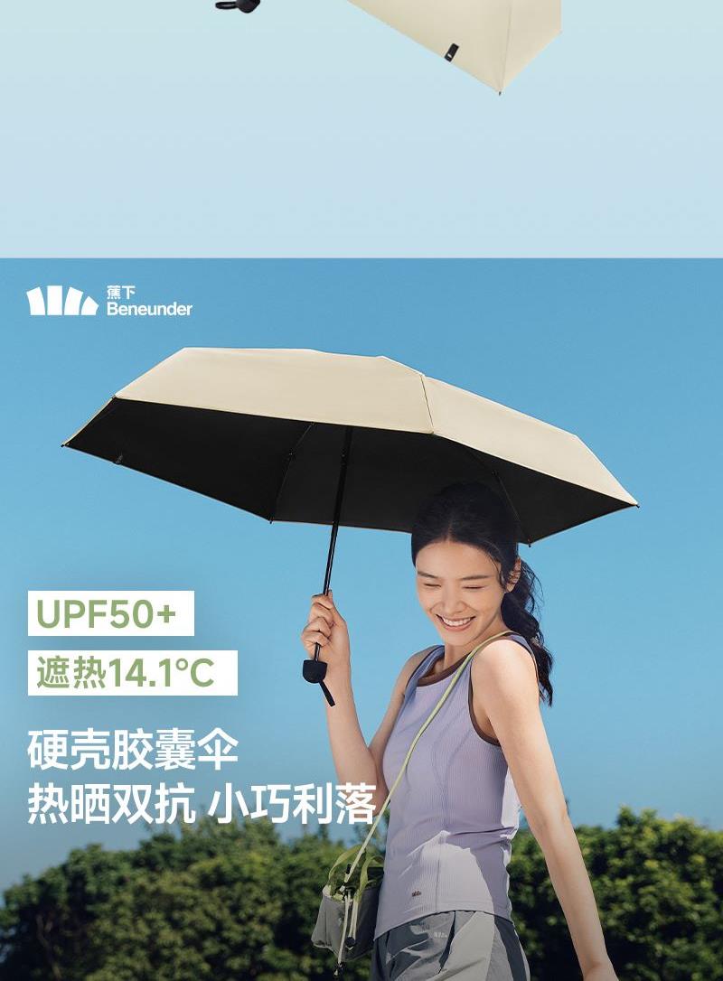 旗舰L.R.C黑胶、UPF50+防晒遮热紫外线阻隔率≥99.99%、全身防晒到脚面热晒双抗、小巧利落。