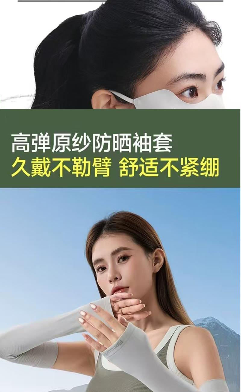 口罩产品卖点 透气率优于普通口罩2.4倍、畅快呼吸不闷热 UPF50+原纱防晒有效阻挡紫外线、不怕晒伤晒红 冰袖产品卖点 UPF50+、原纱防晒水洗不减防晒力、凉感升级 持久冰爽、手臂直至手腕、防晒 四面高弹不紧绷、男女同款