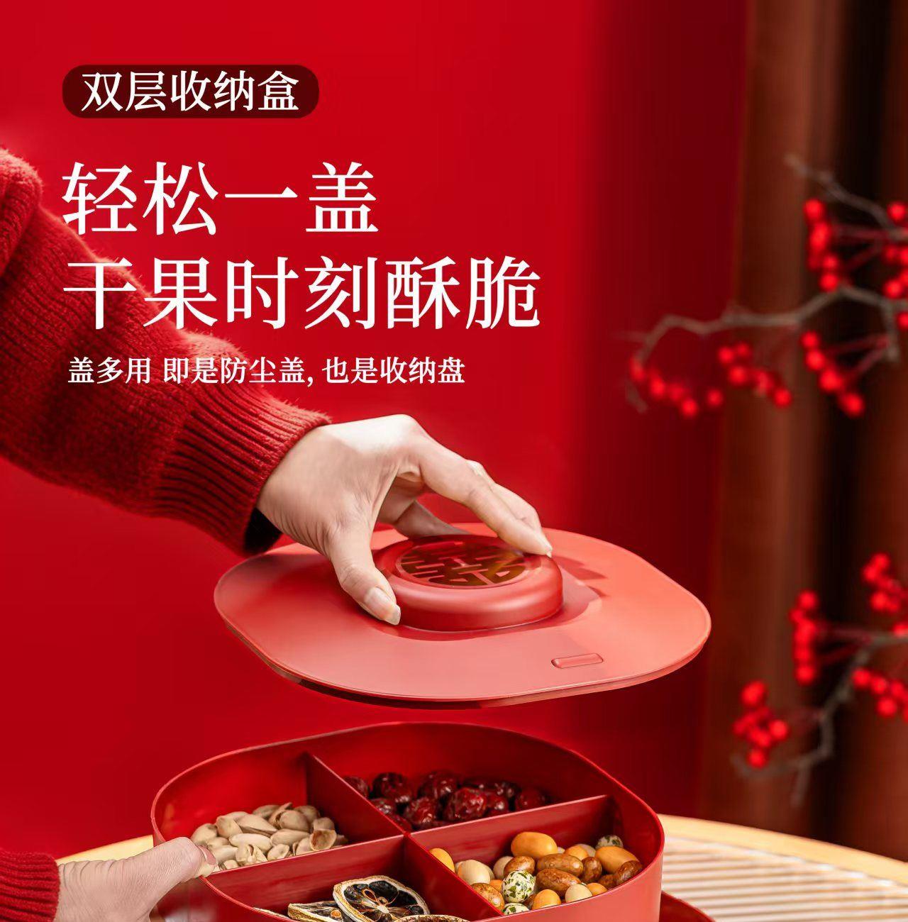 货号:FQMM-L1 配置:糖果盒 尺寸:口径CM/宽CM/高CM 材质:PP 彩盒:23.2*23.2*11cm 外箱:71*48*49CM 规格:1*24套 重量:12KG 69码:6970329771759 产品特点: “福气满满糖果盒” 以糖果的甜蜜美好结合“福气满满” 的吉祥祈愿为核心,将实用的收纳功能与中式传统福文化融合,既承载了对生活甜甜蜜蜜、福气萦绕的美好期许,也因高颜值和吉祥寓意成为兼具实用性与仪式感的物件,是福文化在日常与节庆场景中的具象化表达。