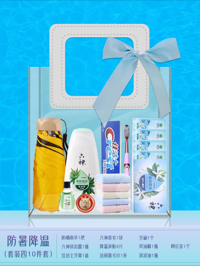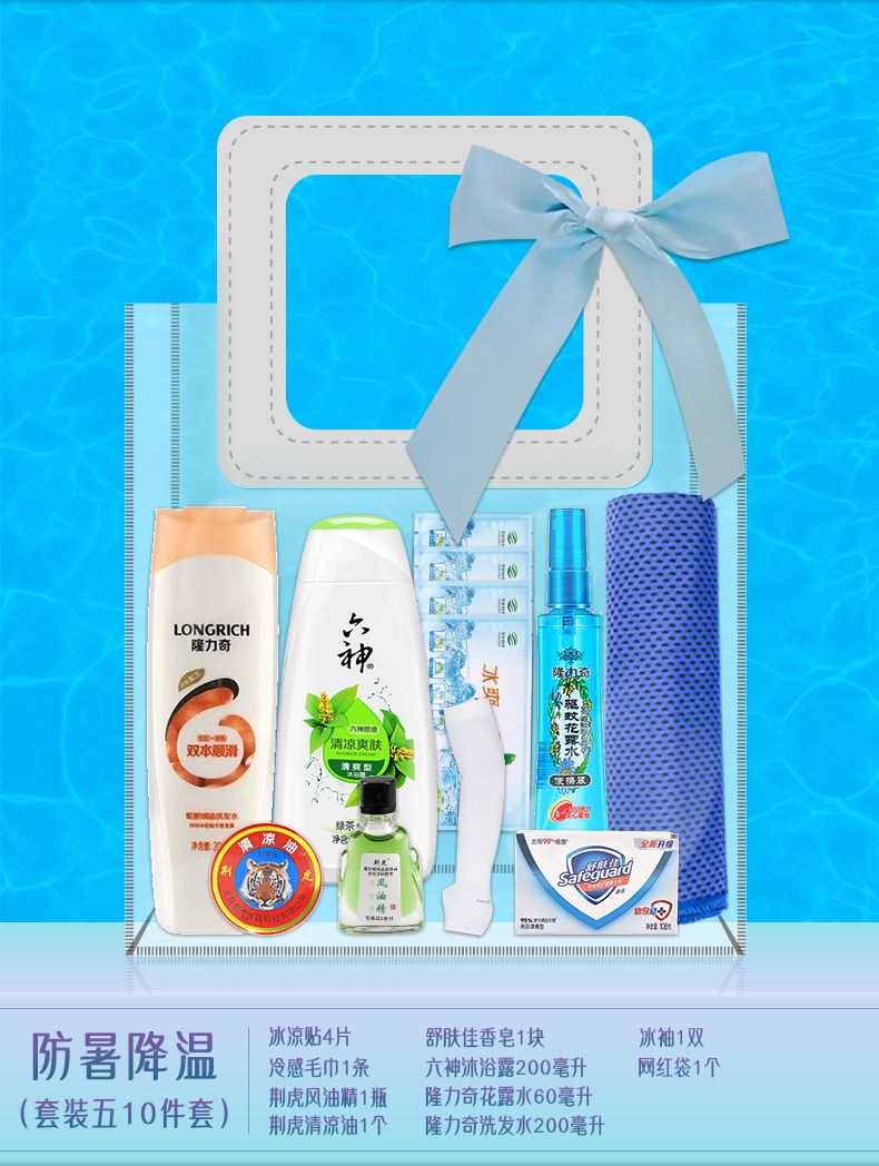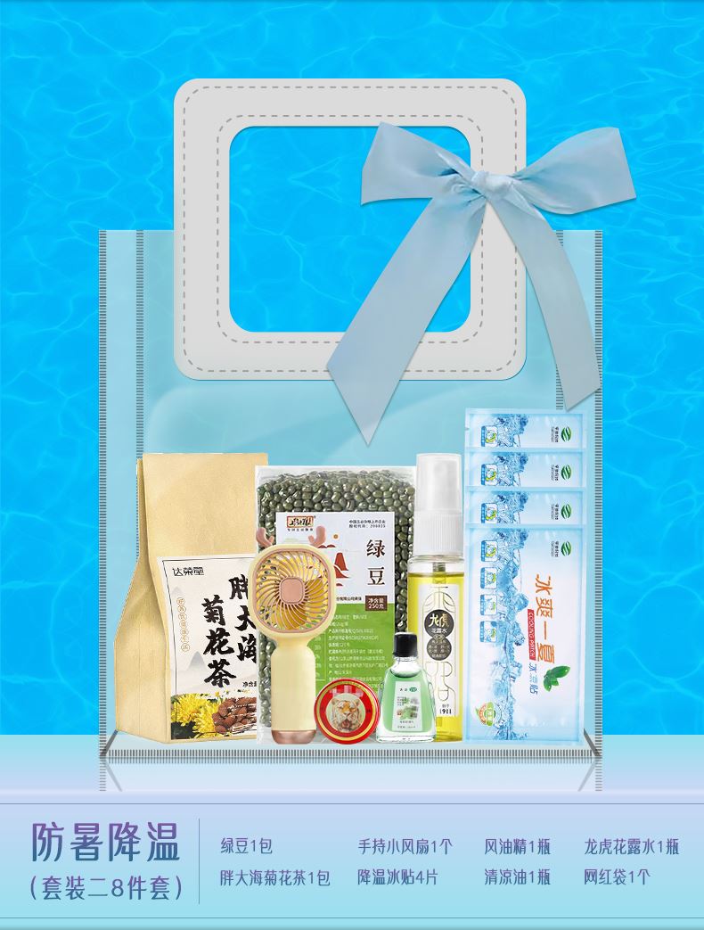 1.注:商城报价对应首张主图款式! 其他套装参考细节图,费用另计! 2. 咨询下单请备注好产品信息! 3.首图款式产品明细:防暑降温(套装一7件套):防晒冰袖1双 ,冷感毛巾1条,运动水杯1个,降温喷雾1瓶,龙虎花露水1瓶,龙虎薄荷膏1袋,网红袋1个