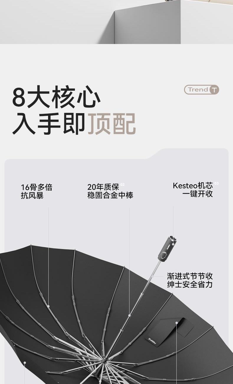左都ZD2589商务反向自动安全式16骨折叠伞