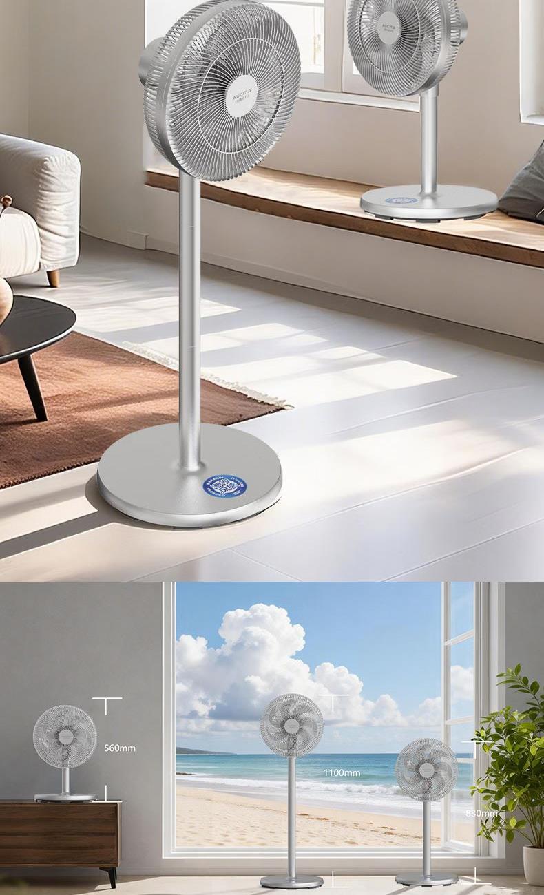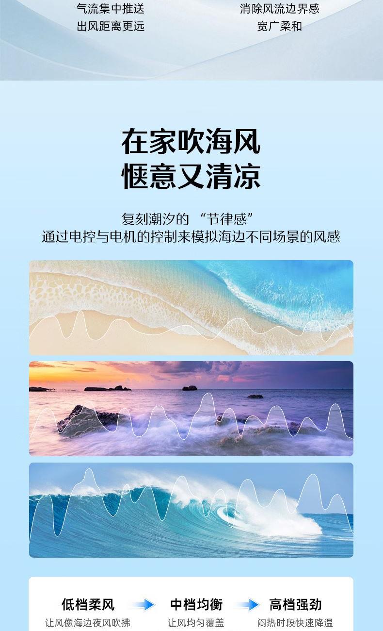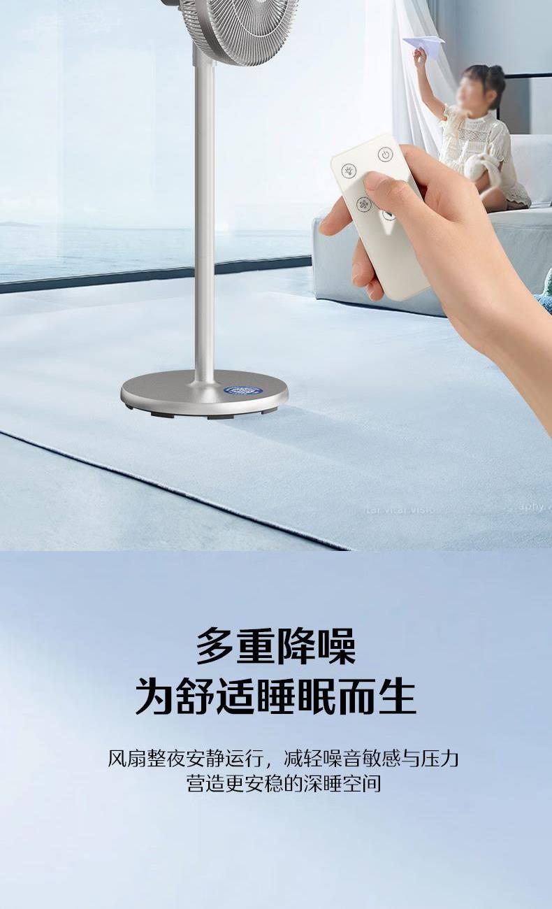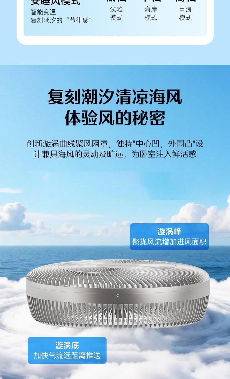 网罩:350mm 扇叶:300mm 7叶弯月扇叶 电机:66-14六系高效电机 立柱:27cm两节ABS 台地立一机三用 包装尺寸:500*210*385mm 风速:5.5m/s 档位:三档 喷漆工艺,质感星空灰配色 模拟潮汐海风 丝丝凉风铺面而来;复刻潮汐清凉海风,体验风的秘密。 产品上下手动摇头,左右自动摇头; 七叶扇叶,风柔音轻,凉爽惬意 安静陪伴,贴身呵护,清凉工作 柔风细腻强而不硬。