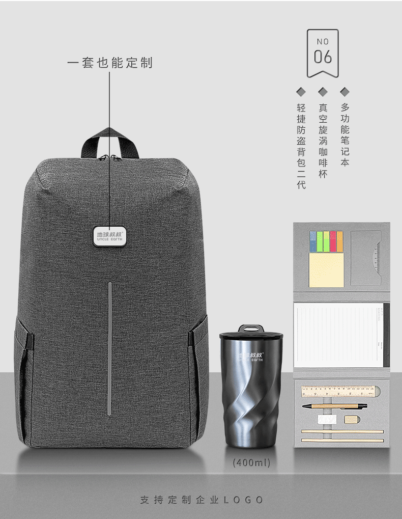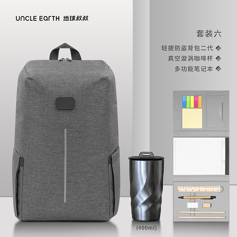 1.注:商城报价对应首张主图款式! 其他套装参考细节图,费用另计! 2. 咨询下单请备注好产品信息! 3.首图款式产品明细:地球叔叔背包(套装一):轻捷防盗背包二代*1、手提真空保温杯*1、手机挂绳*1