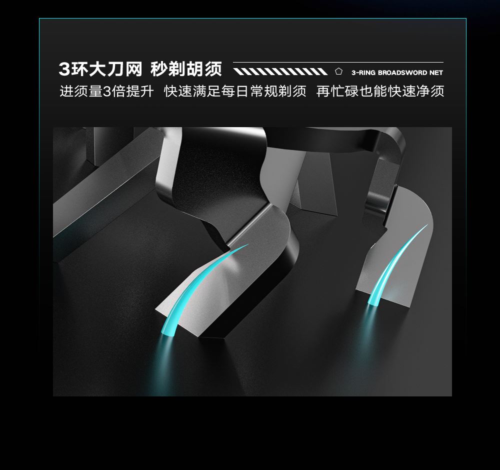 三环大刀网 + 德国研磨刀头,剃须快准净不卡顿