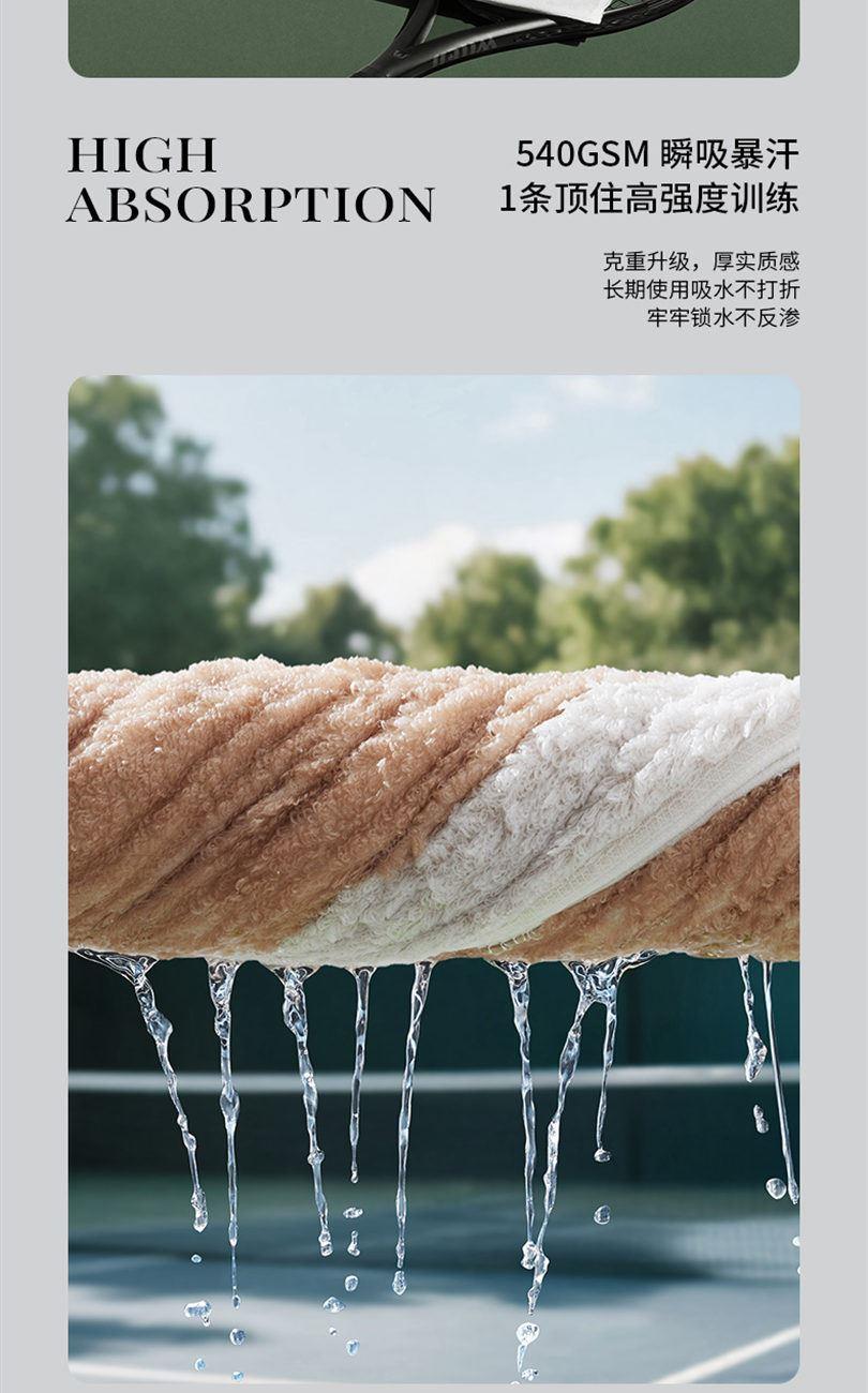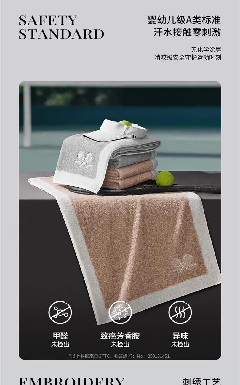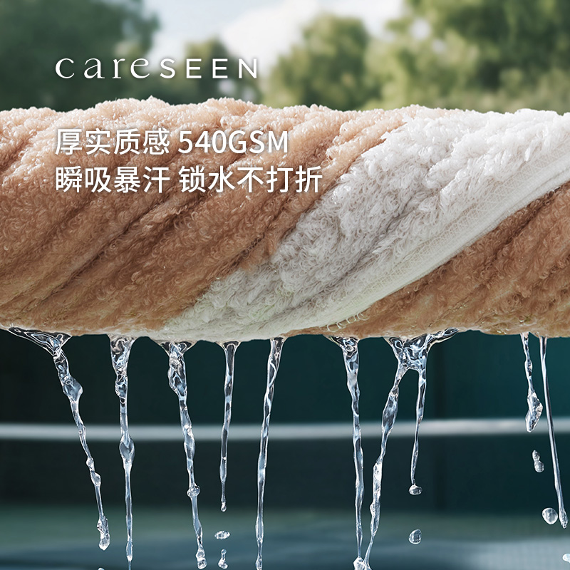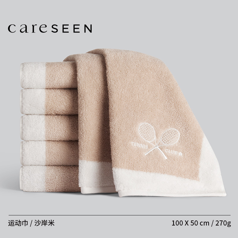 【产品面料】 纯棉 【产品颜色】沙岸米/碳素灰 【产品规格】100*50cm/270g 【产品包装】careSEEN礼盒 瞬间吸水,540 GSM,瞬吸暴汗,牢牢锁水不反渗 紧实耐用有韧性,32S双股纱线更紧实,交织密度高,高强度运动擦拭也不易变形。 安全健康,A类母婴级标准,接触0刺激,更加安全放心使用