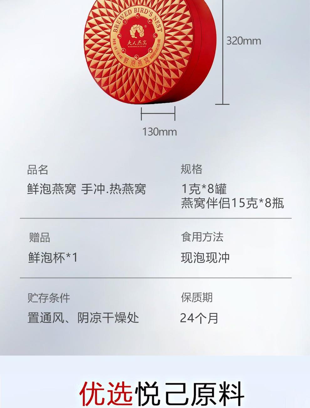 手冲热泡创新形式,免炖免等,3分钟解锁温热鲜燕窝; 燕丝完整不碎,热水冲发即出胶,口感软糯温润无腥气; 锁鲜工艺留存活性营养,无添加更纯粹,滋养高效易吸收。