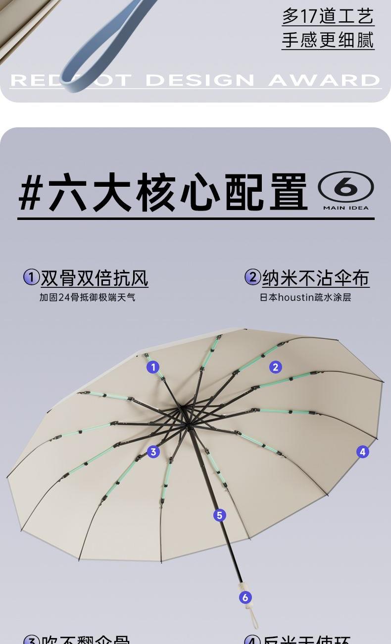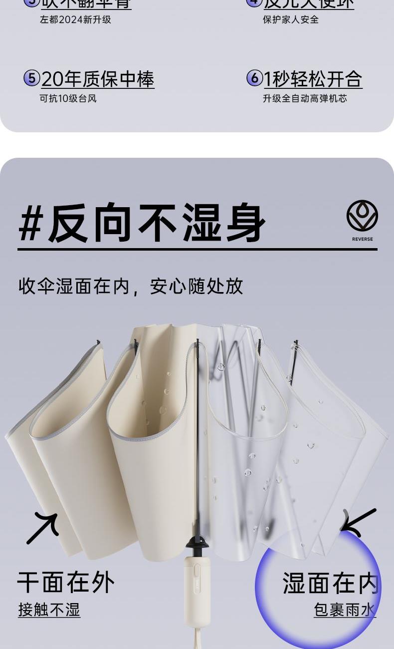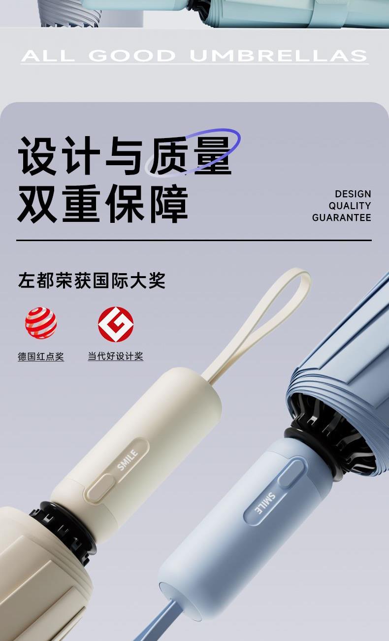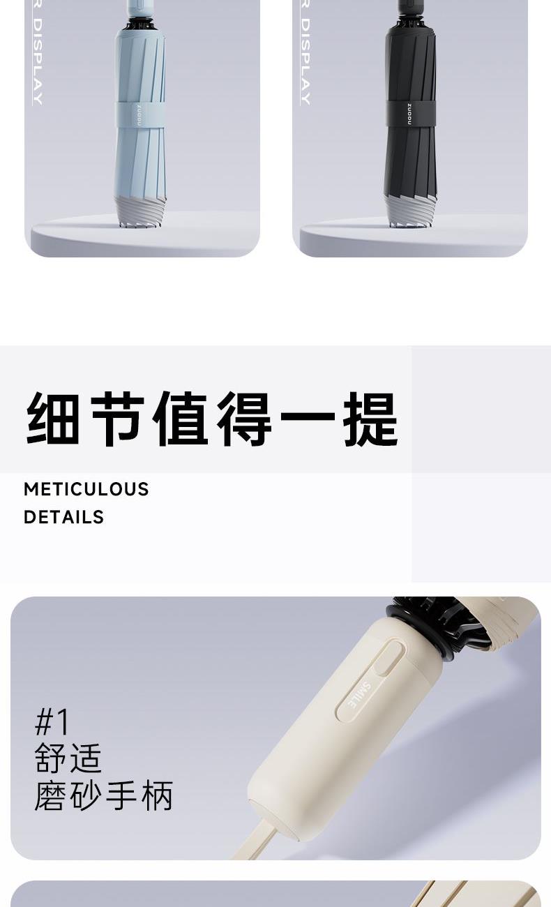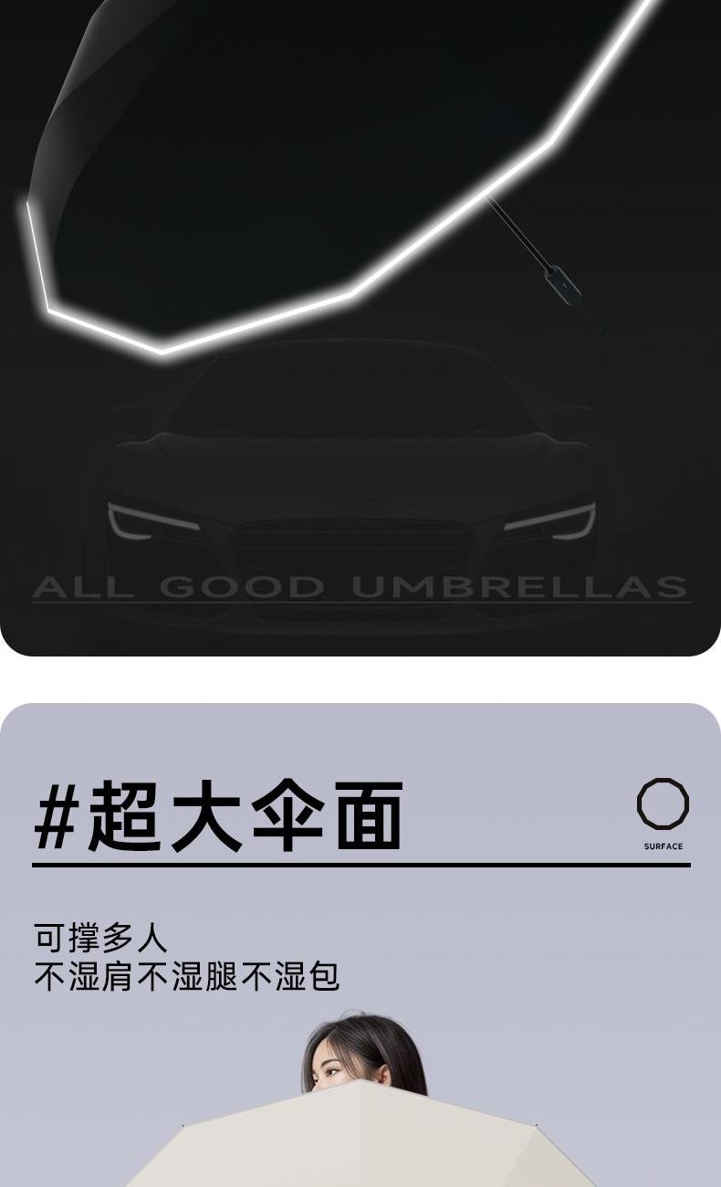 商品货号:ZD191 伞架材质:碳素钢,玻纤 伞面材质:抨击布 款式:自动三折 商品参数:直径:105cm 高度:68cm 收拢直径:6cm 收拢高度:35cm 商品毛重:0.498 商品颜色:米咖色 星空黑 灰绿 浅灰 灰蓝