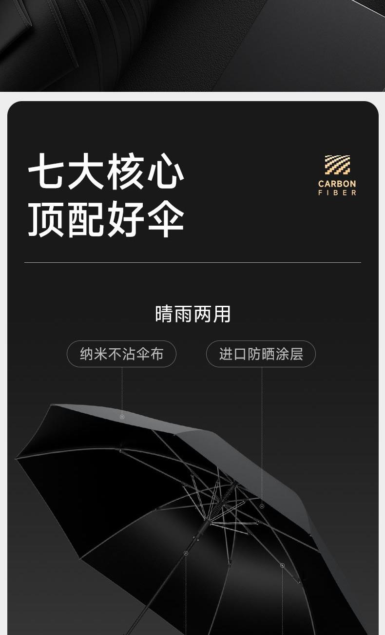 左都ZD075-碳纤维长柄直杆黑胶防晒伞