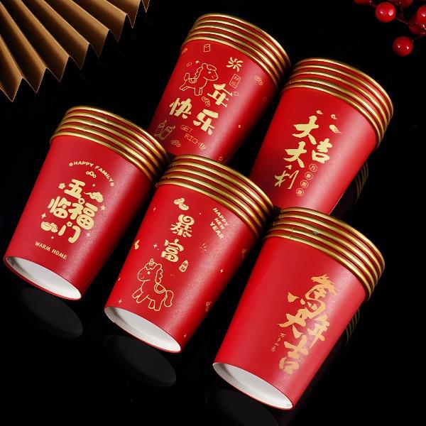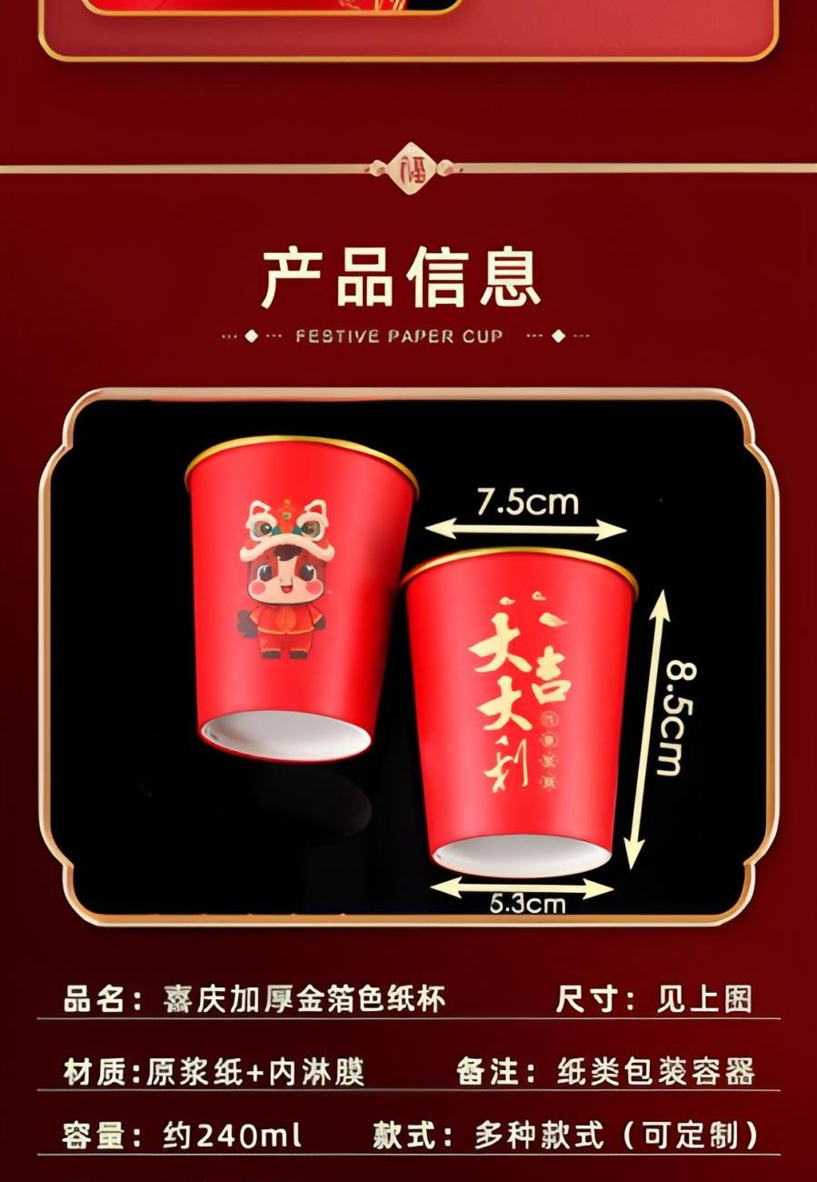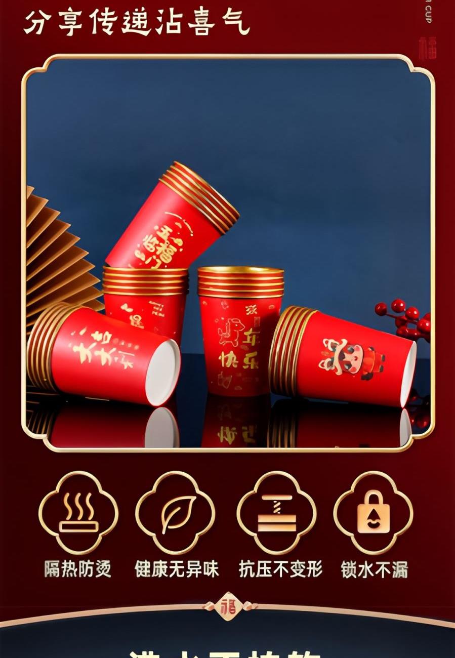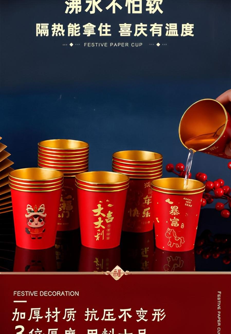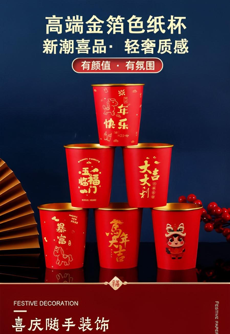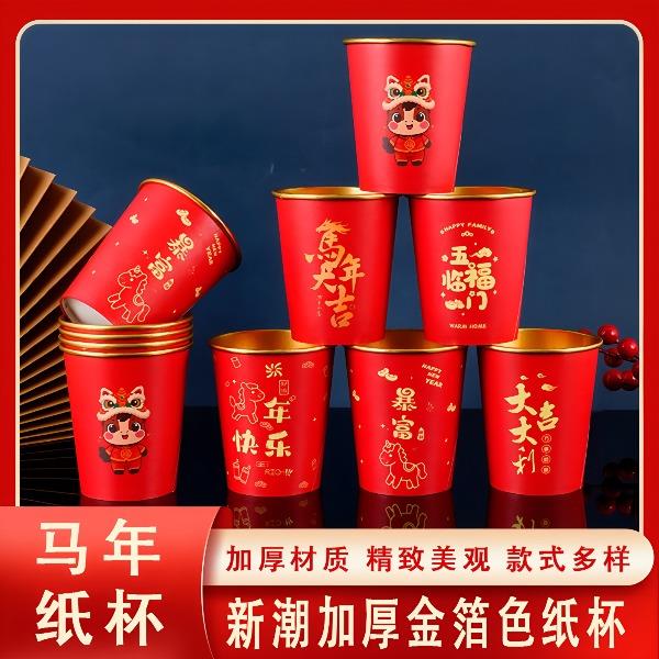 2026年马年金箔纸杯一次性红色金箔杯加厚耐高温家用
