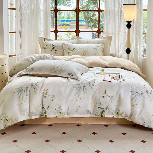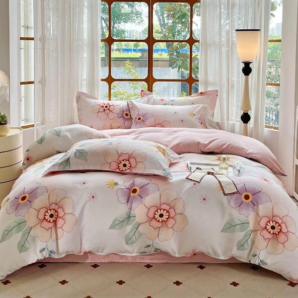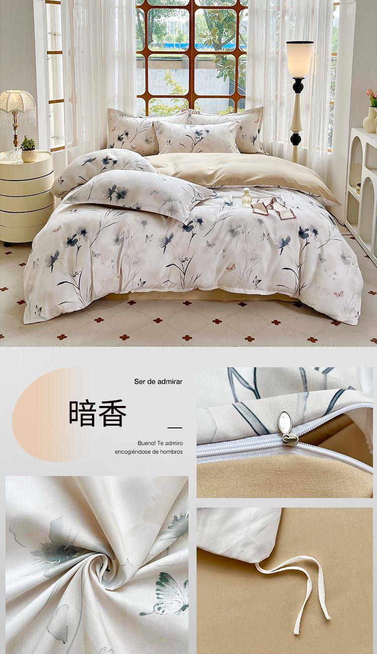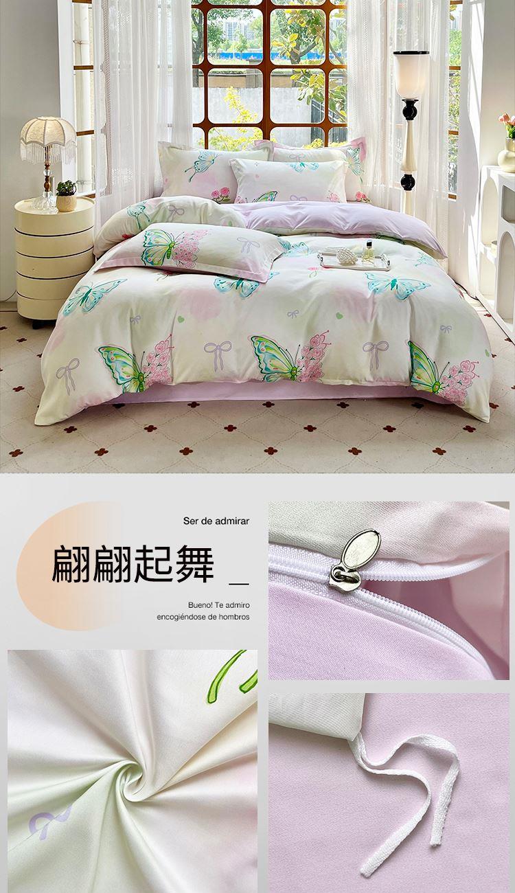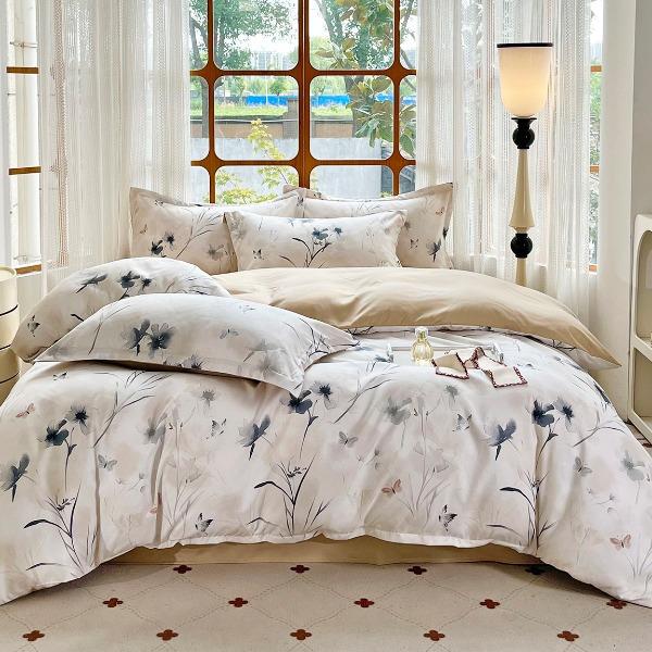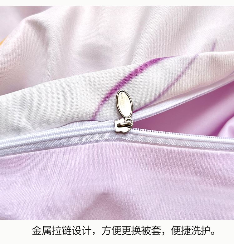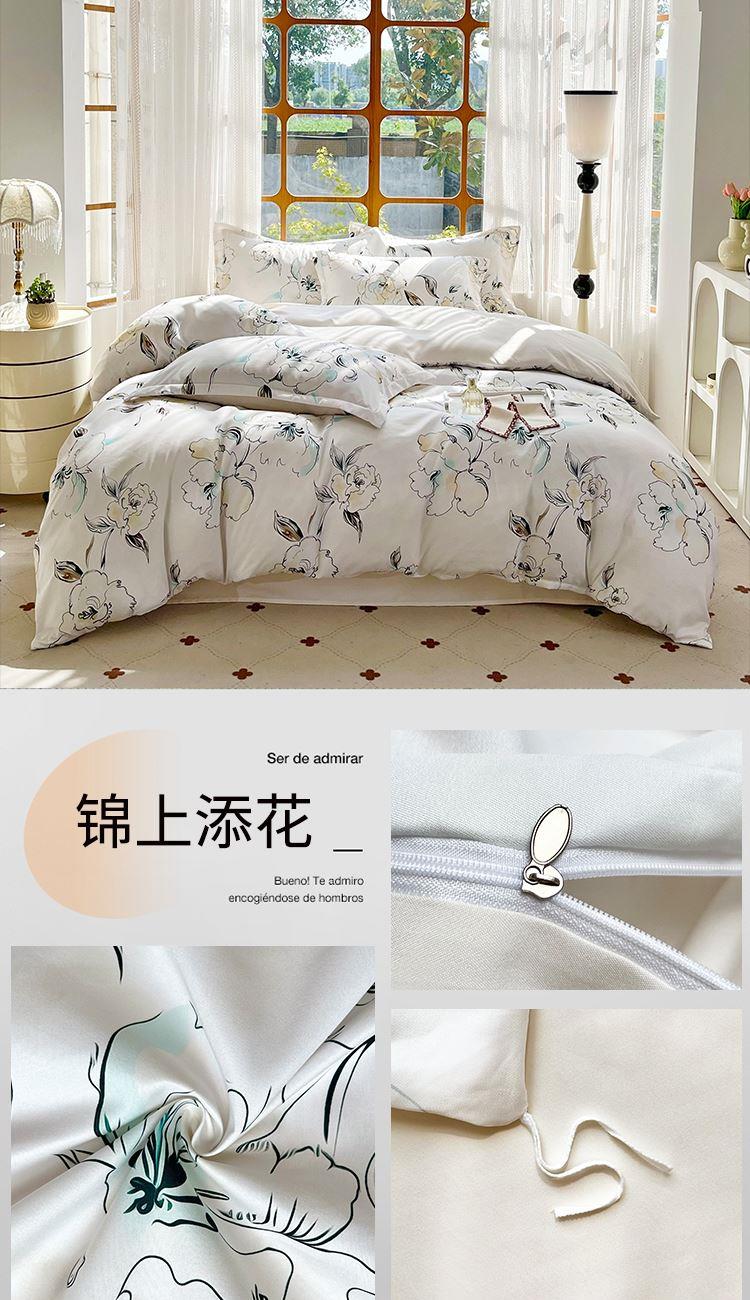 1:花海梦境 丝滑好眠 数码印花四件套 自然亲肤 2:馥郁花镜蔓延蕴藏温柔本真 以田园花卉为设计灵感当冰雪融化,万物生长花草竞相开放,生机盎然 3:双面织色 恒久缤纷 AB双版设计,充满生机的自然景色在每次翻身感受布料的呼吸感与质朴手感 尺寸:被套200*230cm*1 床单:230*250cm*1 枕套:48**74cm*2 包装:天地盖彩盒