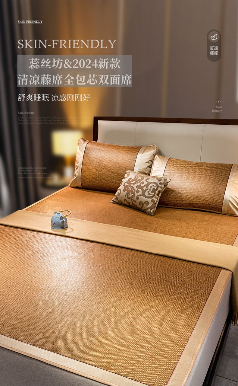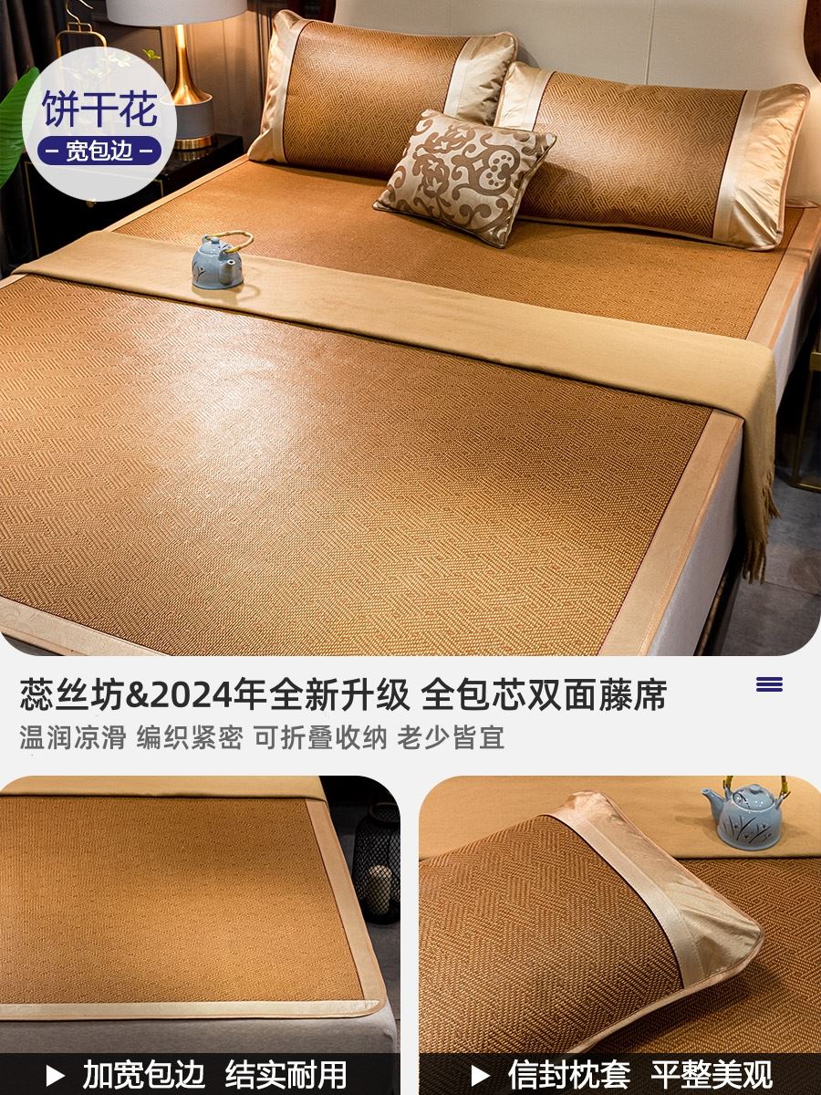 蕊丝坊家纺清凉藤席全包心双面席三件套150*200cm