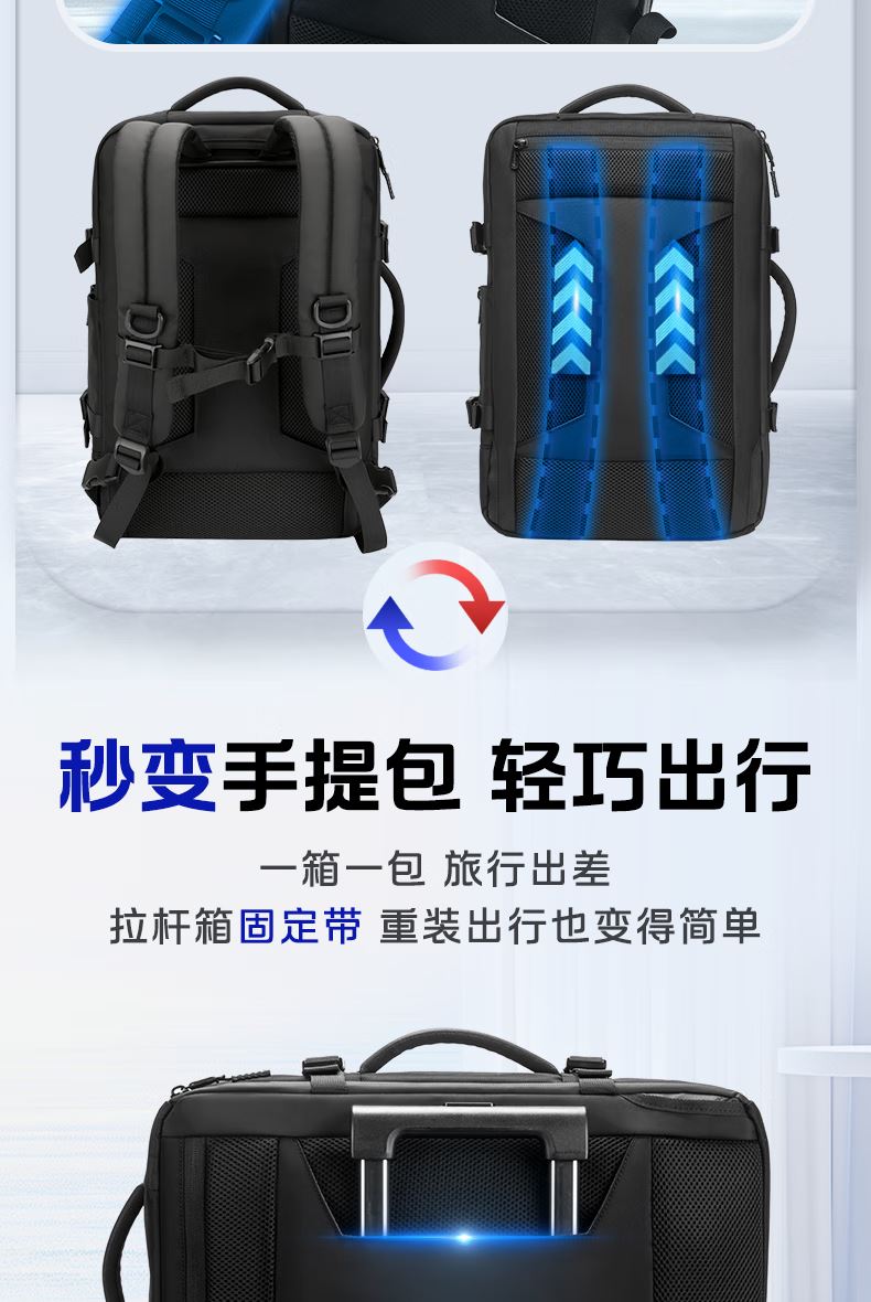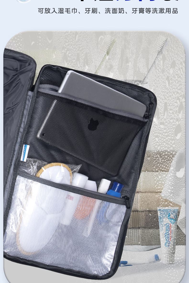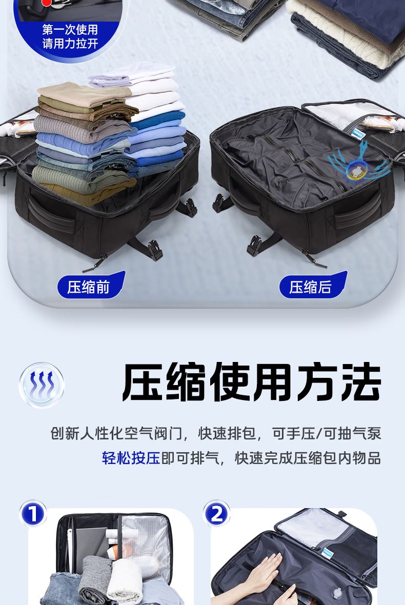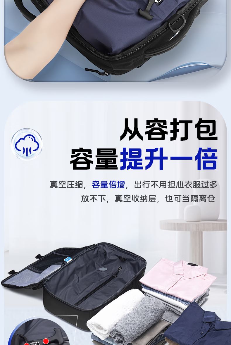 1.主仓真空压缩功能,轻松收纳行李