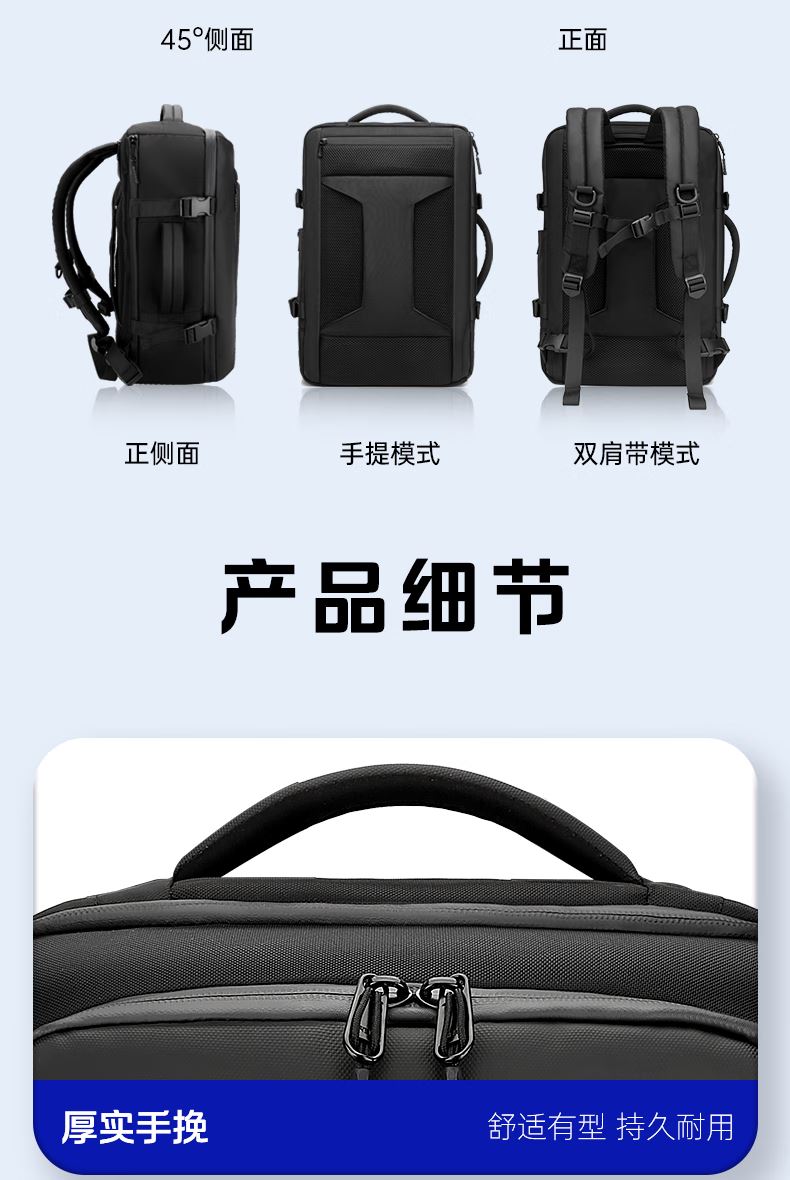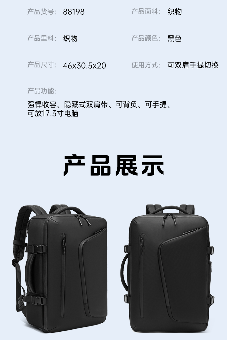 4.多功能背负设计,可侧背/双肩包,竖提/公文包,横提/手提包,适合多种生活,工作场景.