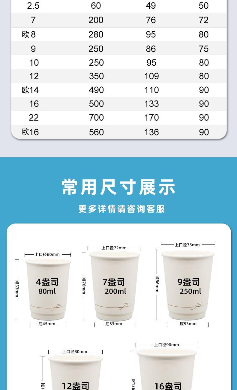 产品尺寸:上口径80mm下口径57mm高度95mm 内纸克重:300g 外纸:300g 外箱尺寸:64*50*65cm 主要成分:原生木浆 执行标准:GBT20808 卫生标准:GB15979 卫生许可证:(豫)卫消证字(2024)第0063号 产品等级:合格