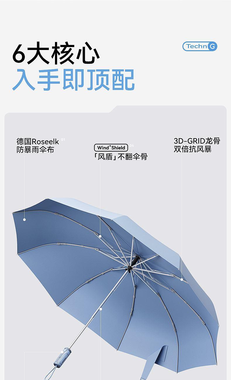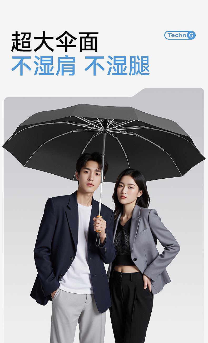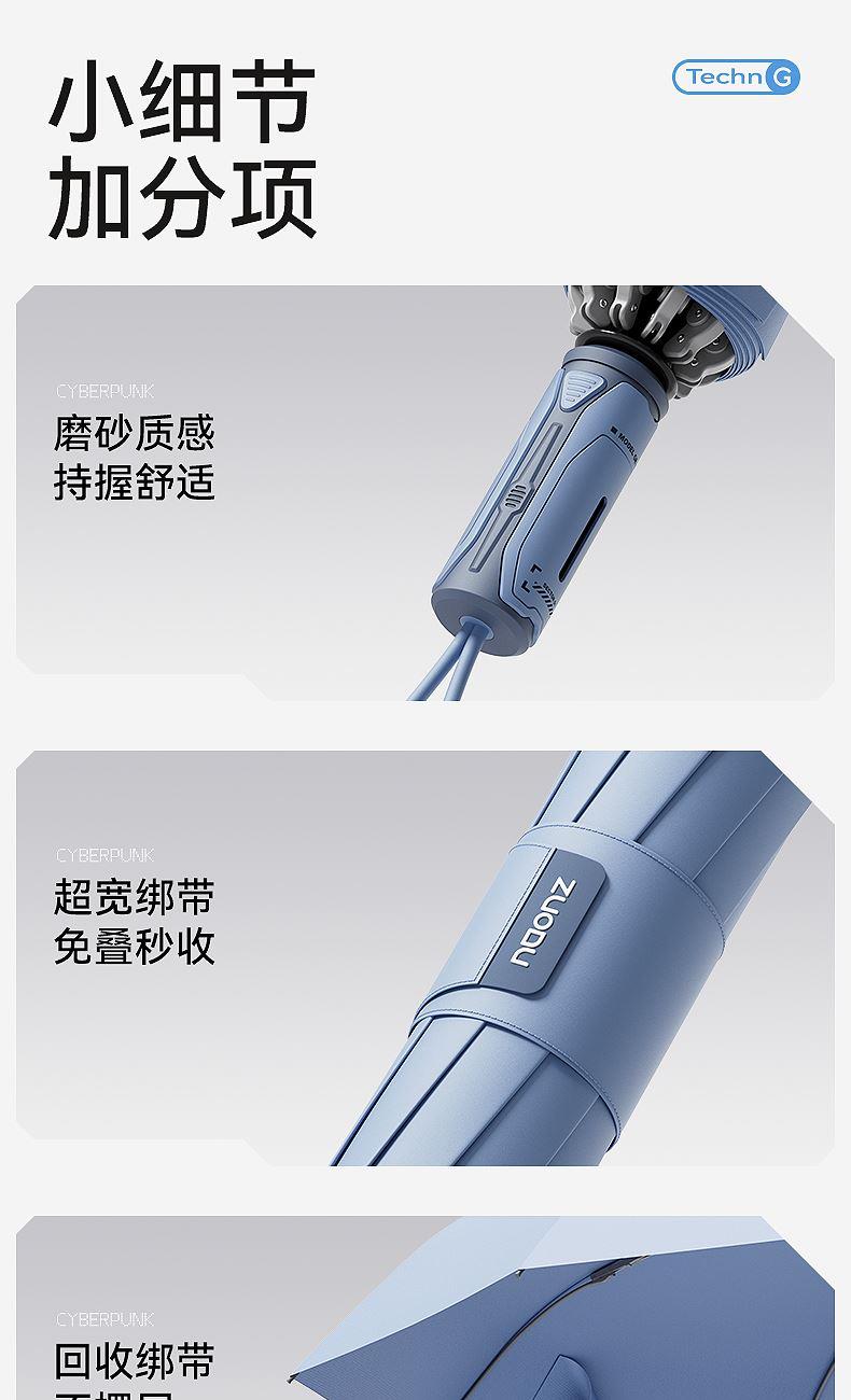 左都ZD2587赛博科技安全式自动三折折叠雨伞