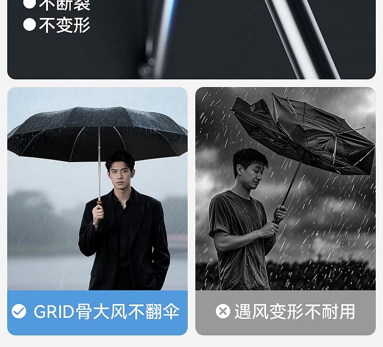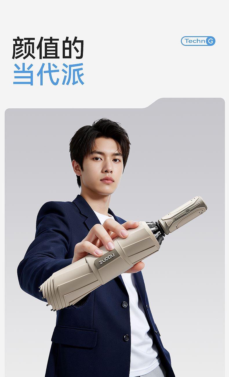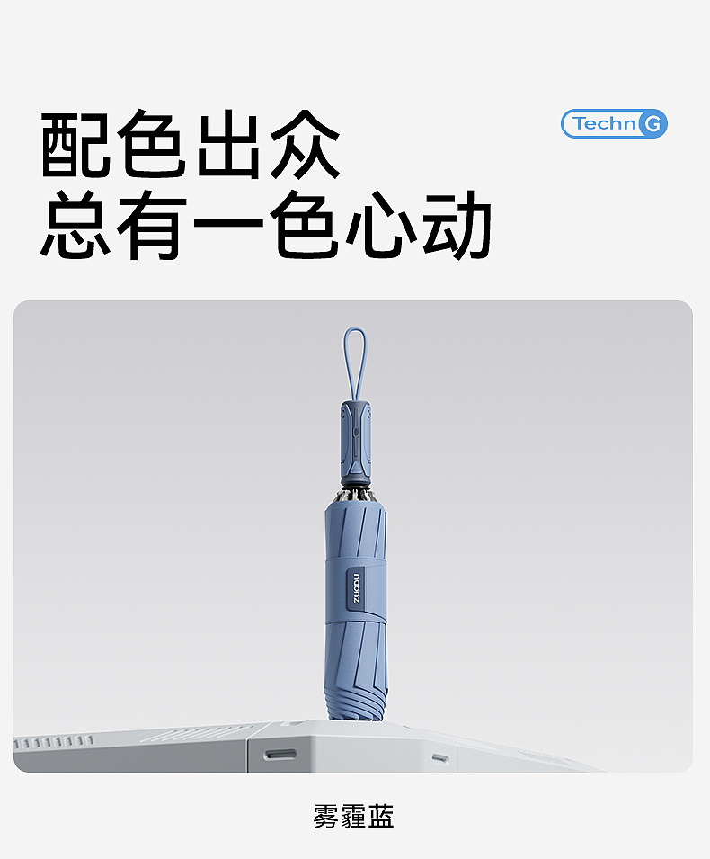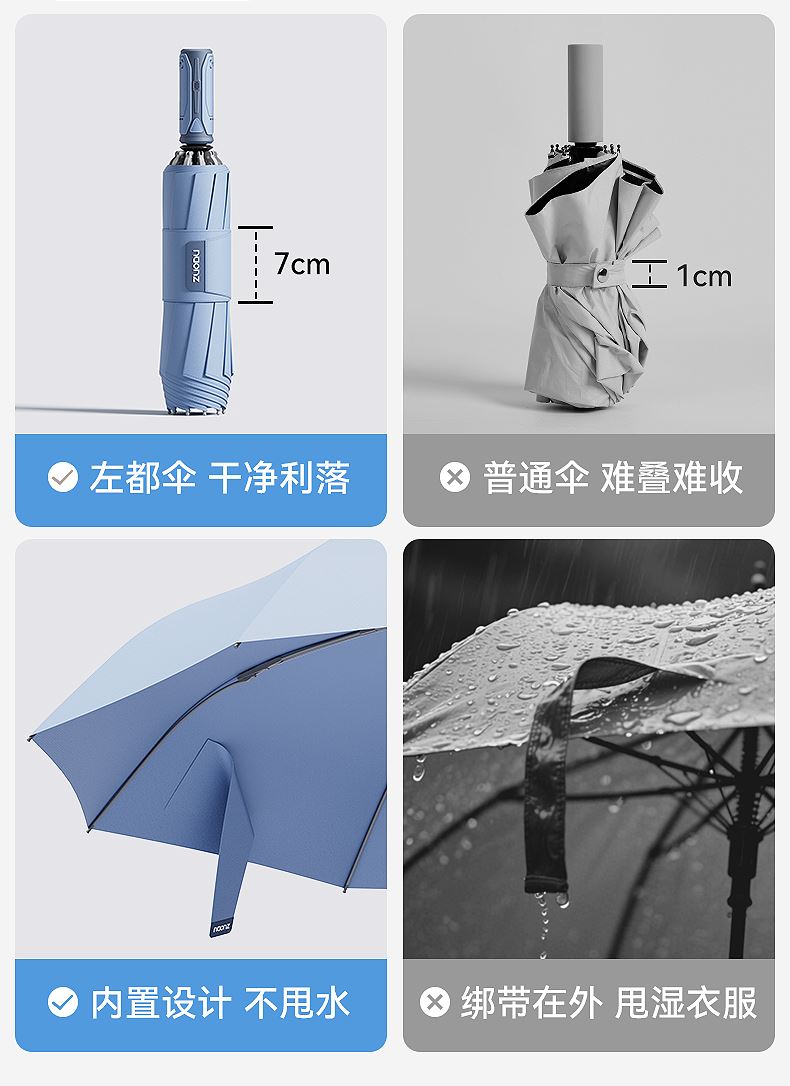 左都ZD2587赛博科技安全式自动三折折叠雨伞