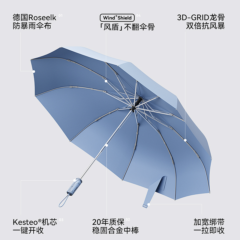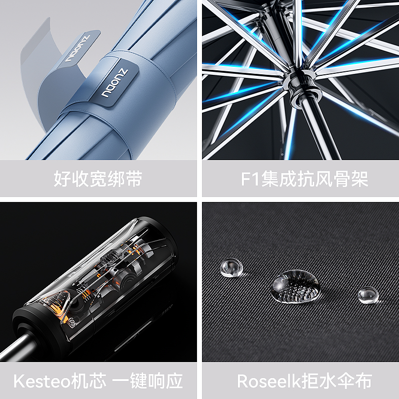 1.超宽绑带秒折叠 反向不湿抗风暴