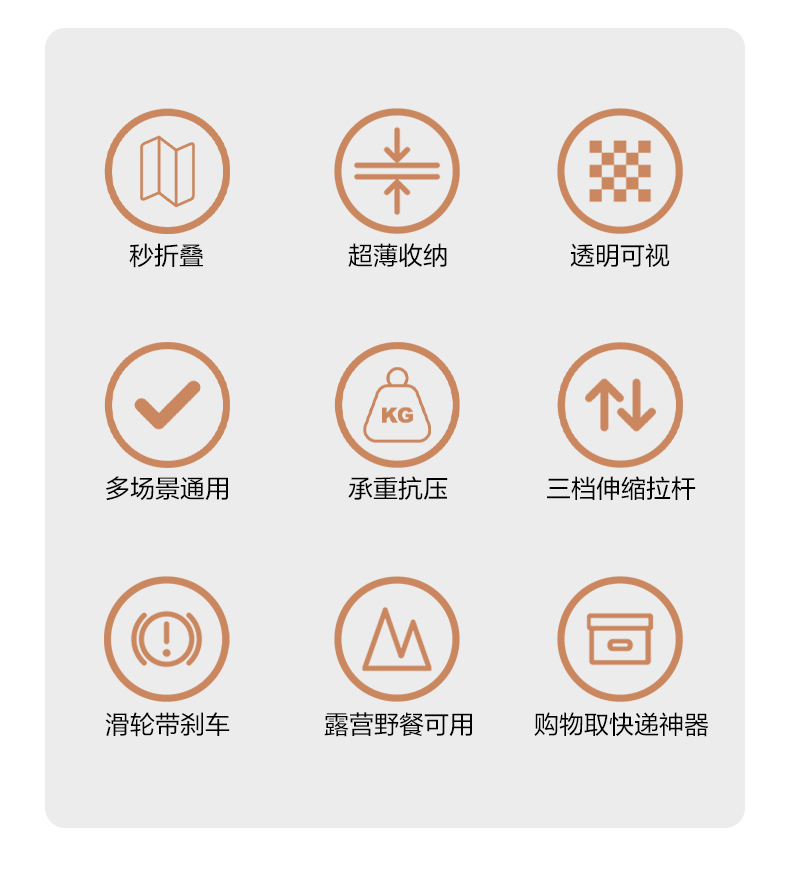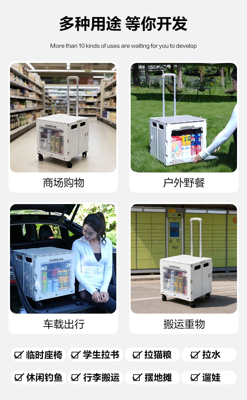 多场景适用:商场购物,户外野餐,车载出行,搬运重物,临时宠物箱,休闲钓鱼,摆地摊,拉快递…