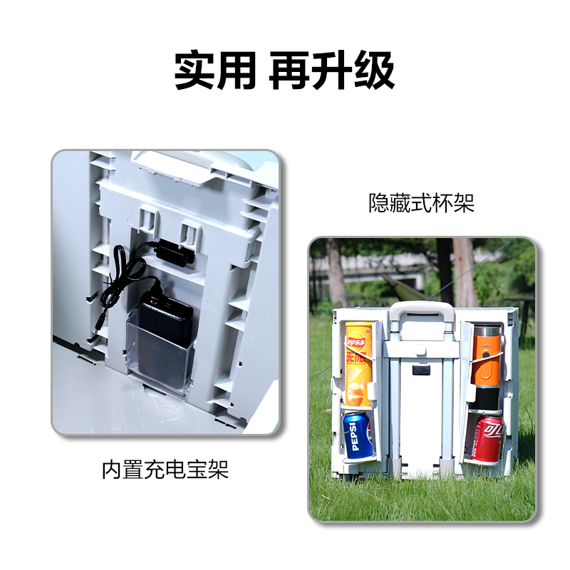 箱壁配有2套6个隐藏杯架,另配有USB充电接口