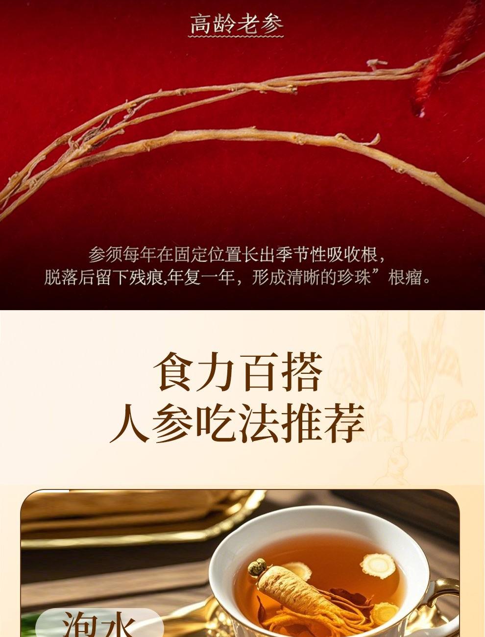 长白山十五年足龄参,根形饱满养分足,品质上乘; 自然陈化成分稳,甘醇药香浓,滋补价值高; 无添加精湛干制,切片/炖汤皆可,食用便捷; 全程品控严,自补送礼皆宜,还具收藏性。